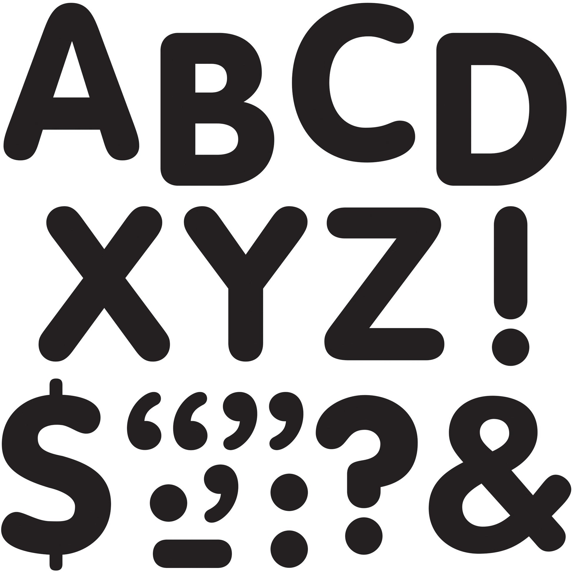 Trend STICK-EZE Letter & Symbol - 68 Uppercase Letters 39 Punctuation Marks - Self-adhesive - 2 Height - Black - 107 / Pack. Bold self-adhesive letters are perfect for customizing your bulletin board or personalizing folders notebooks and storage containers. Coating on each letter offers extra durability. Set contains 68 uppercase letters and 39 punctuation marks. Use letters for teaching students in kindergarten to eighth-grade and ages 5 to 14.