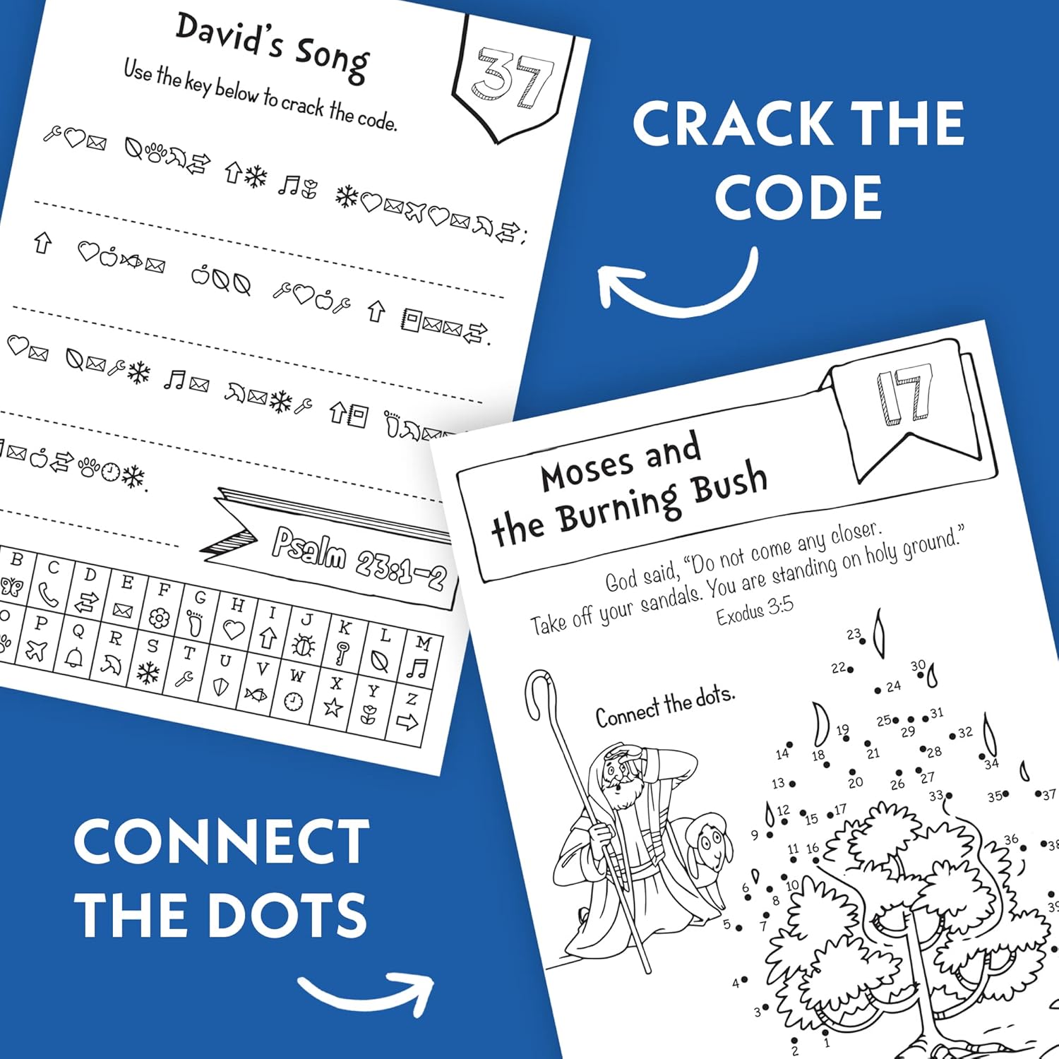 77 Bible Activities for Kids is designed to entertain little ones while at the same time instilling in them a love for God's Word. Kids will have fun joining the dots to see what swallowed Jonah or helping the animals find their way back to Noah's ark through a tricky maze. The activities will occupy their attention and at the same time teach them about the Bible.