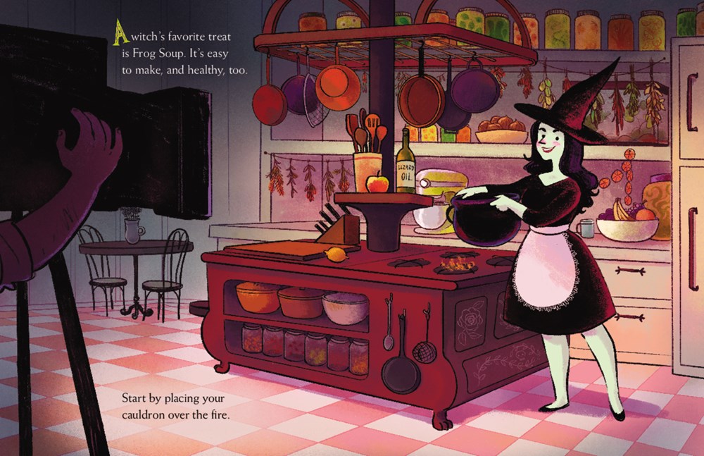 A witch’s favorite treat is frog soup. Luckily, it’s healthy and easy to make. To give it that extra kick and a pop of color, the key ingredient is a spoonful of frogs. But how do you keep the frogs on the spoon? They hop, they leap, they hide . . . and they escape. What is a poor witch to do?