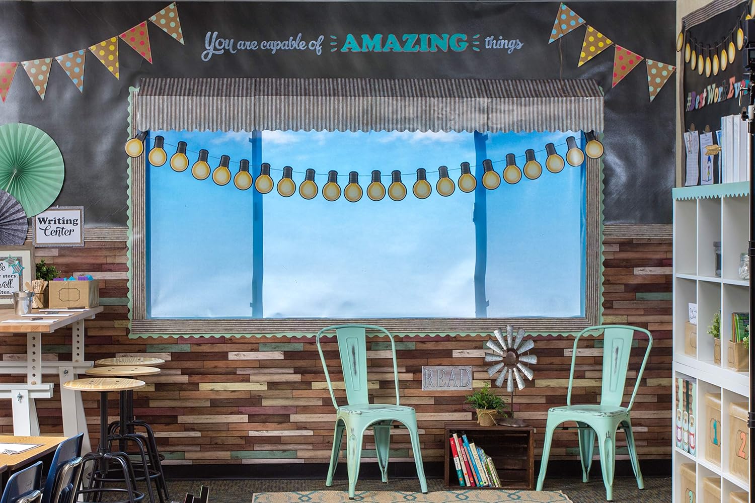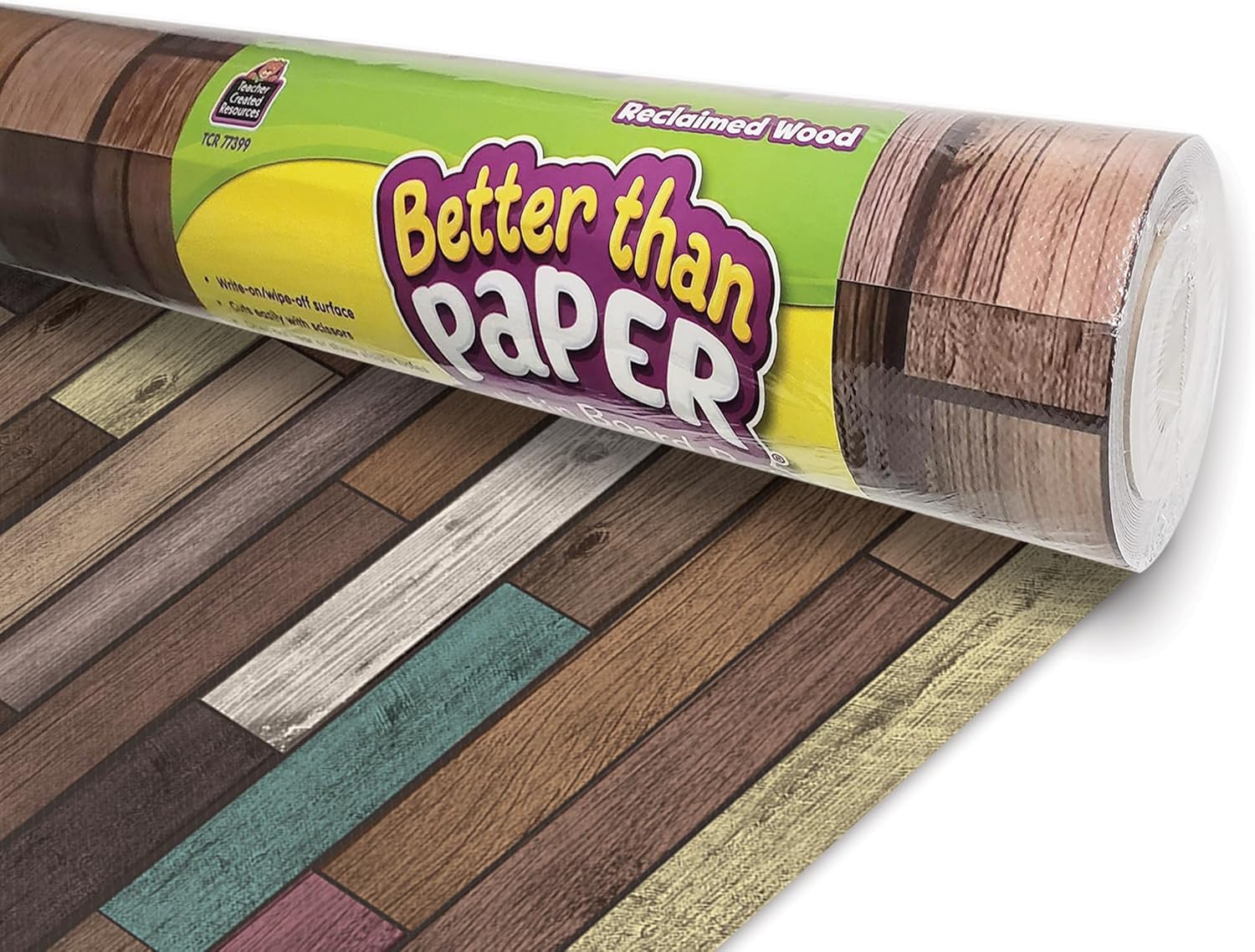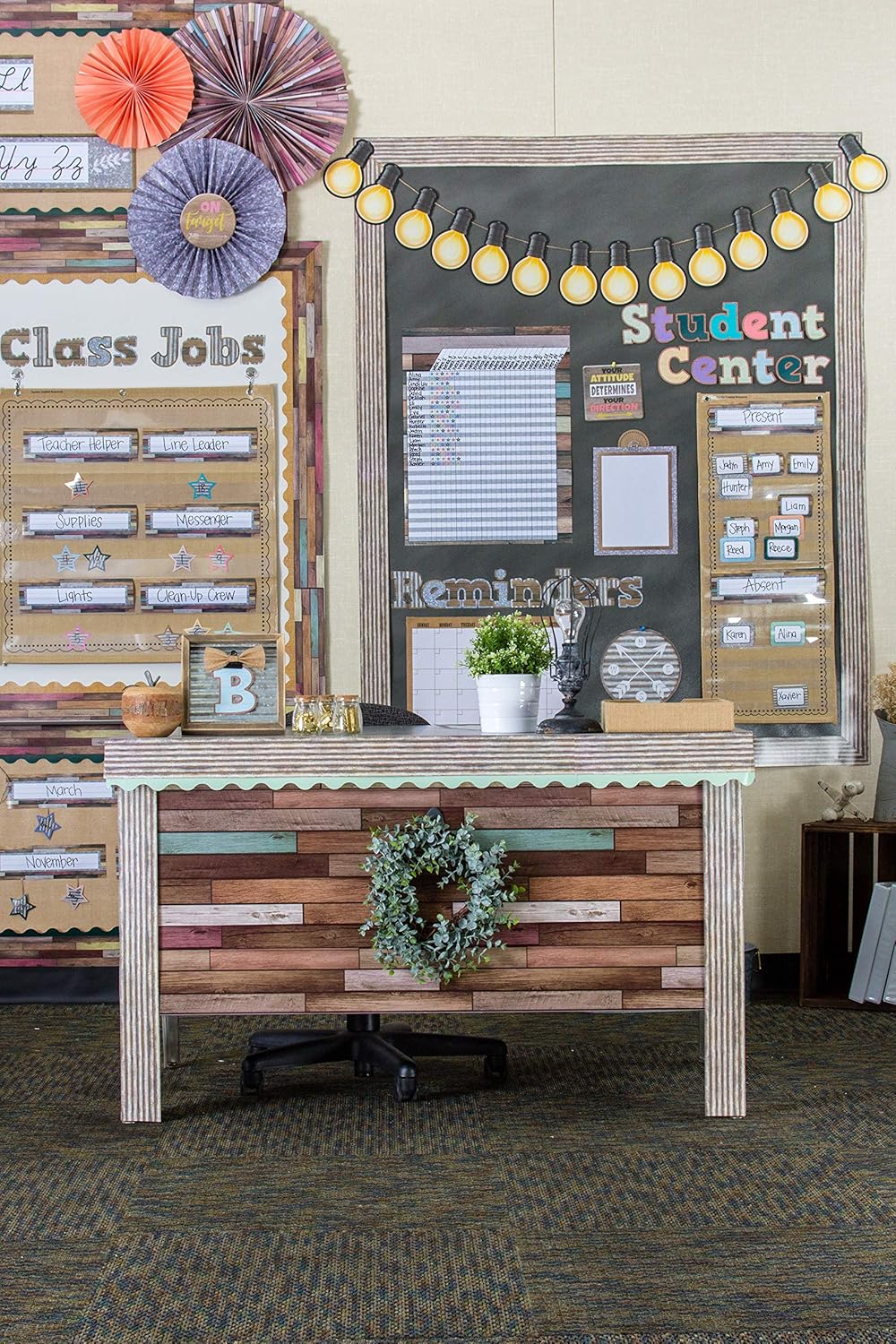 Give your classroom a glamorous makeover with this modern wood design. This revolutionary non-woven fabric makes creating beautiful bulletin board backdrops quick and easy! The lightweight material is simple to hang—no more struggling with paper that wrinkles and tears. Attach border trim, accents, posters, and student work with staples or tape and remove without ripping or leaving conspicuous holes. The durable write-on/wipe-off surface can be used again and again. Roll measures 4' x 12'.