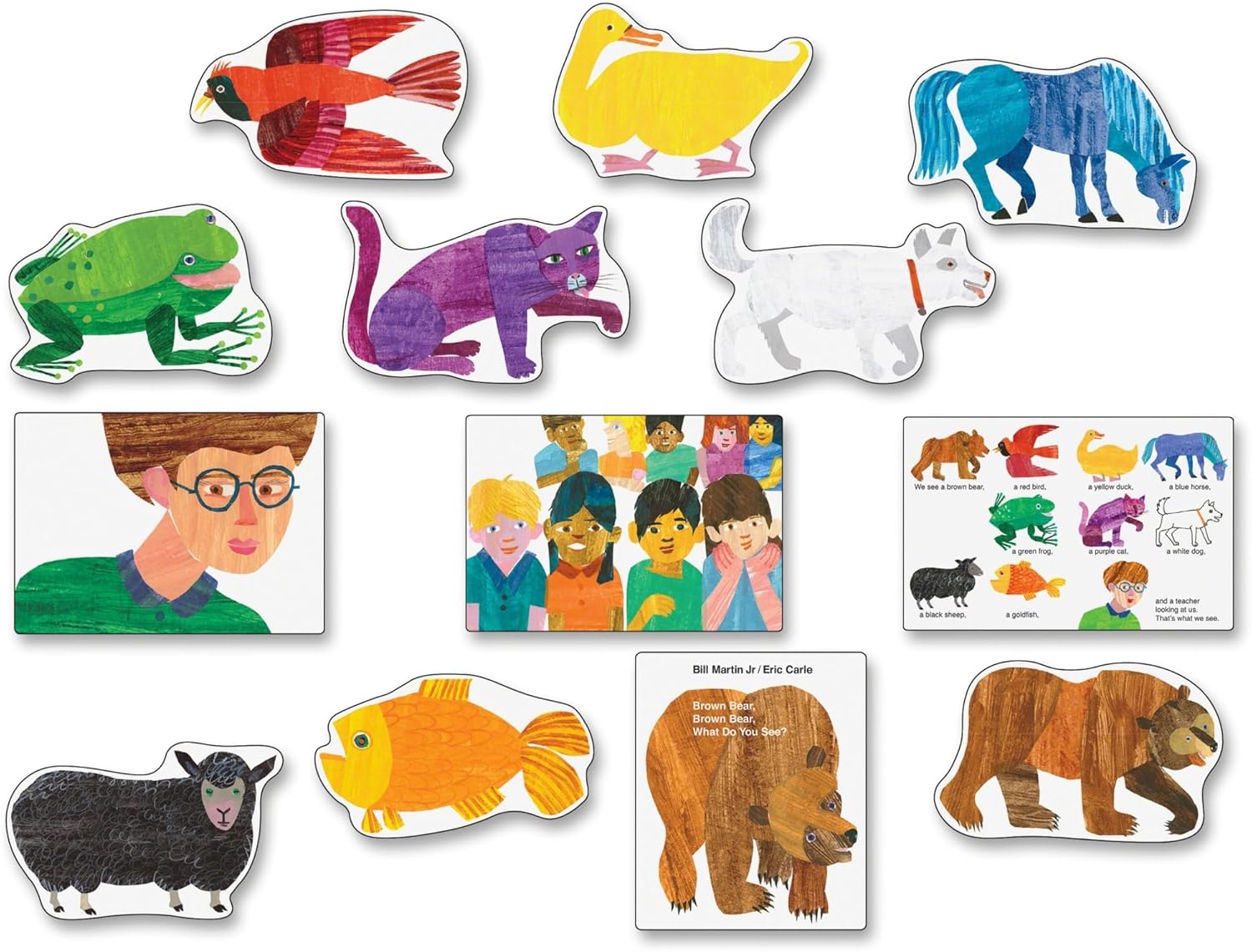 This vibrant, beloved bulletin board set includes: 12 storytelling pieces (largest 16" x 10.5") "Brown Bear, Brown Bear, What Do You See?" book cover image A resource guide -- & (C) 2009 Eric Carle LLC. Licensed by Chorion Rights Limited.