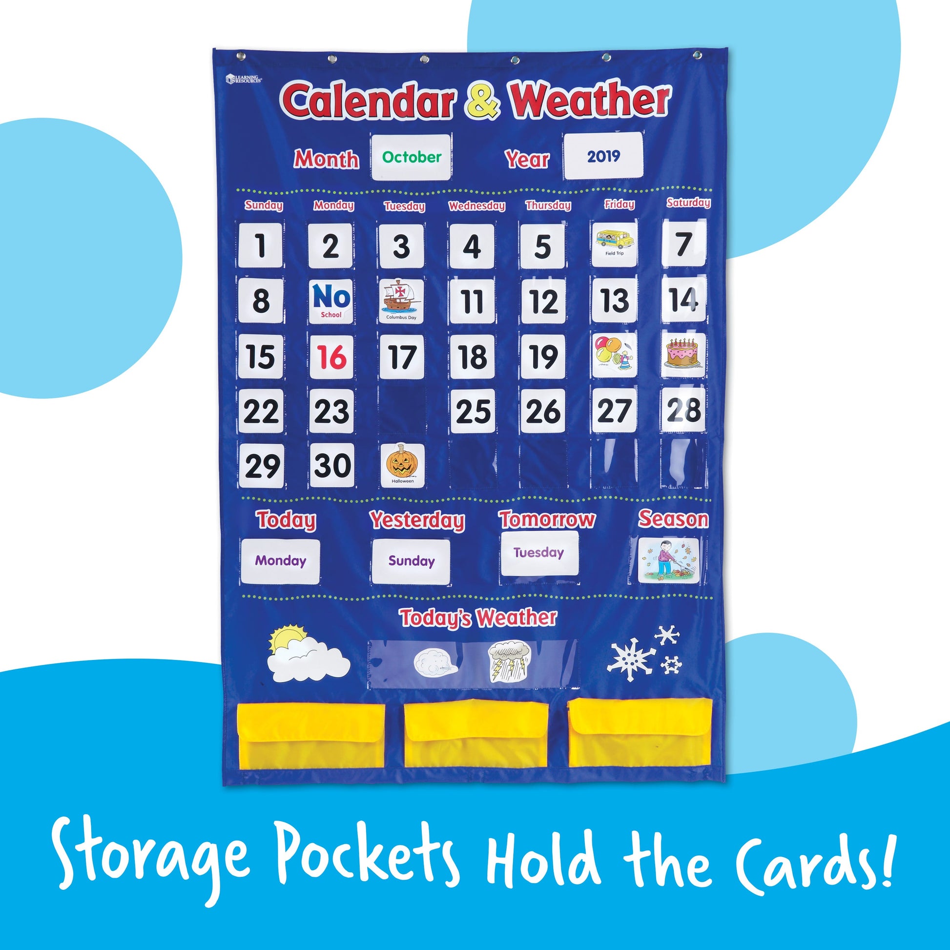 - CALENDAR AND WEATHER POCKET CHART: Engage children in learning about seasonal happenings and weather with this illustrated chart