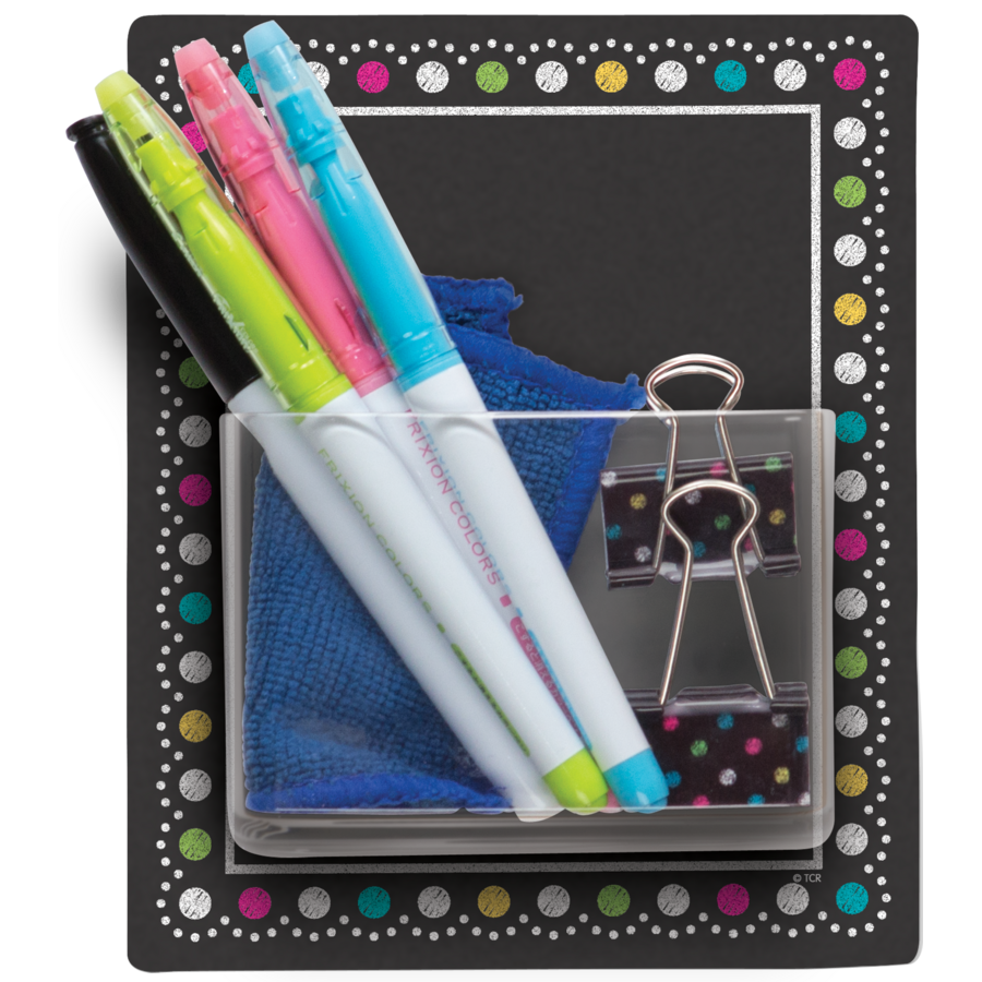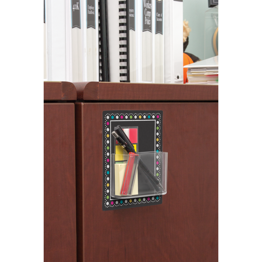 Clingy Thingies® storage pockets hold tight to any smooth surface. Store pens, pencils, flash cards, whiteboard accessories, and more. Size: 1"D x 5⅛"W x 6¼"H.