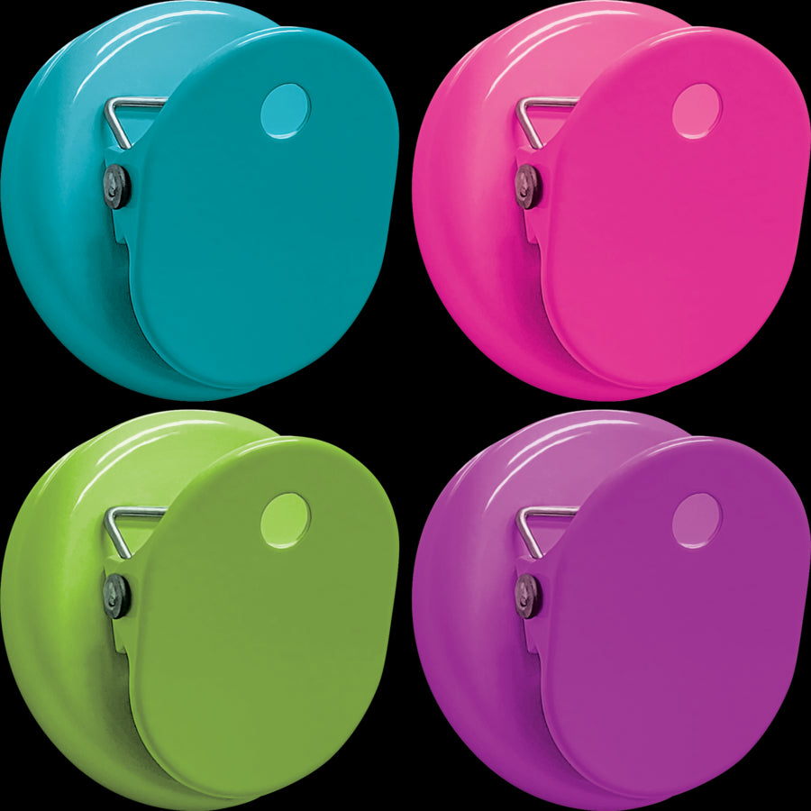 Strong magnets and durable metal construction. Great for hanging pocket charts, hall passes, decorations and more.. Features Strong magnets, durable construction; Includes 4 clips; 1 each in aqua, hot pink, lime, and purple