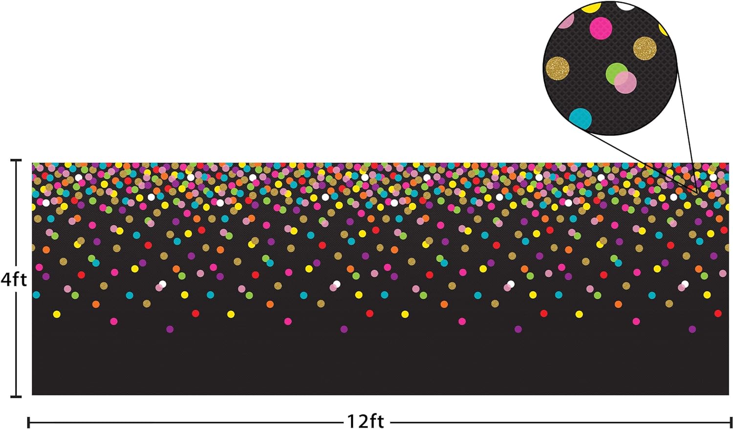 This colorful confetti design will create a fun learning environment for students while the revolutionary non-woven fabric makes creating beautiful bulletin board backdrops quick and easy! The lightweight material is simple to hang—no more struggling with paper that wrinkles and tears. Attach border trim, accents, posters, and student work with staples or tape and remove without ripping or leaving conspicuous holes. The durable write-on/wipe-off surface can be used again and again. Roll measures 4' x 12'.