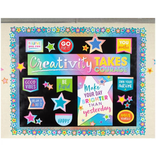 Welcome, inspire, and encourage students with this Colorful Vibes Creativity Takes Courage Banner! Folds for easy storage and then unfolds to 8″ x 39″. UV coated.