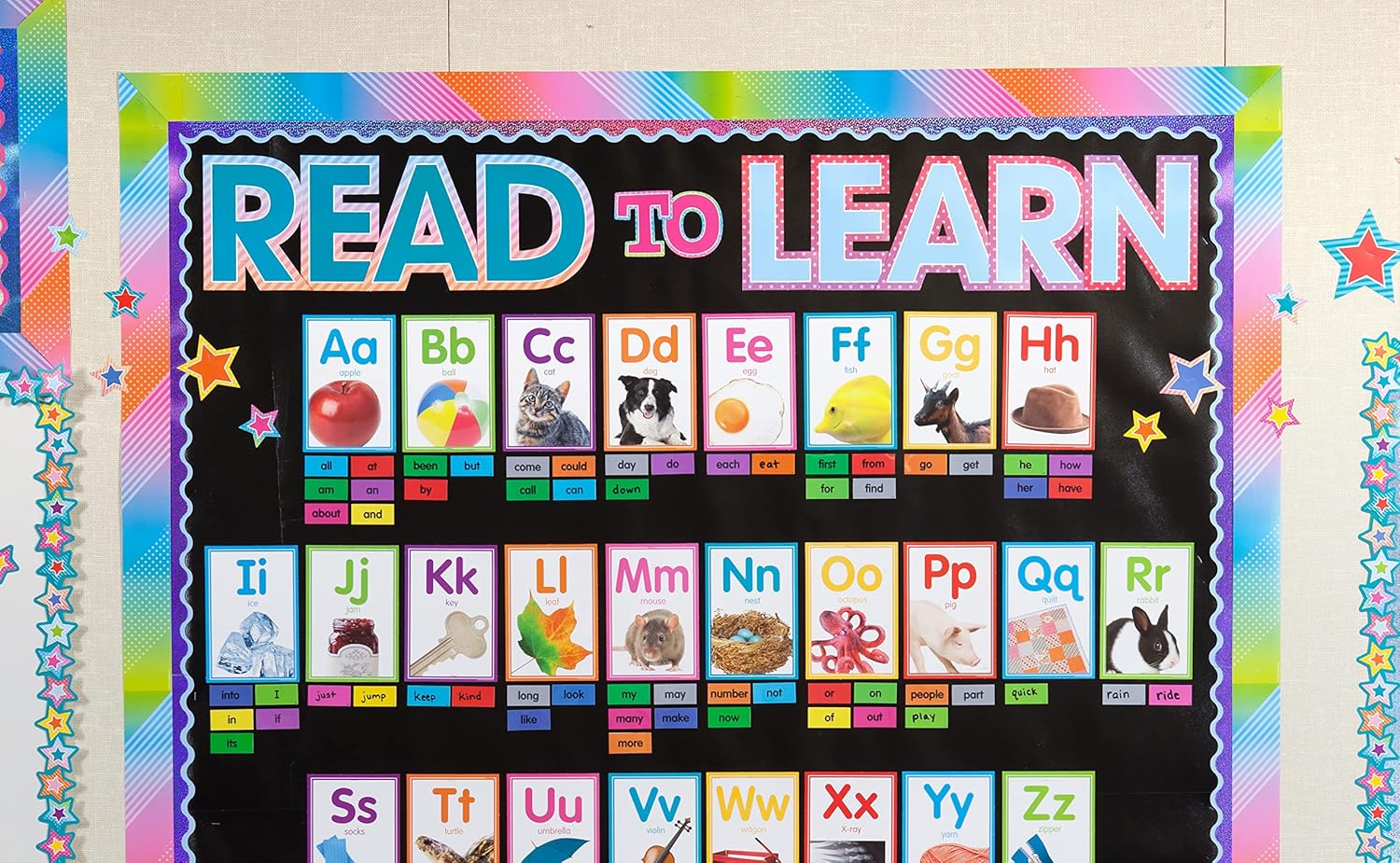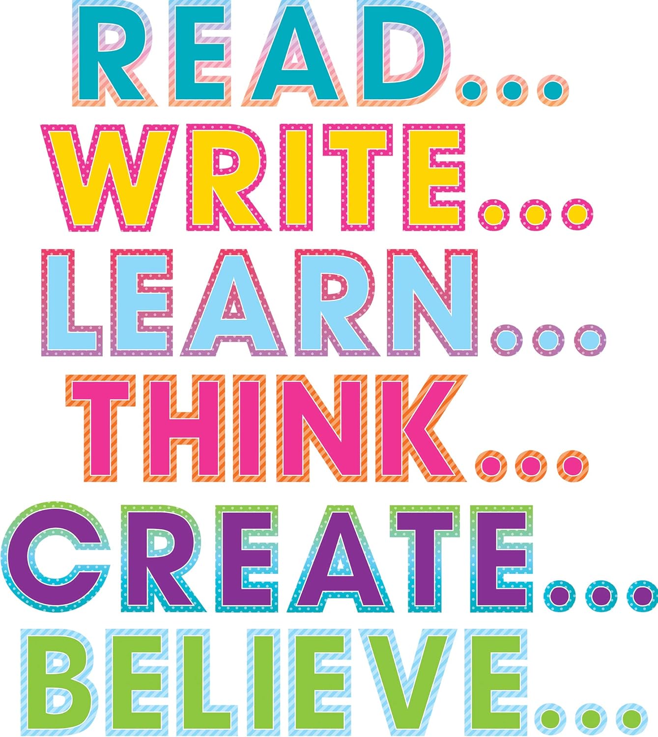 - Words included are READ, LEARN, THINK, CREATE, WRITE, and BELIEVE