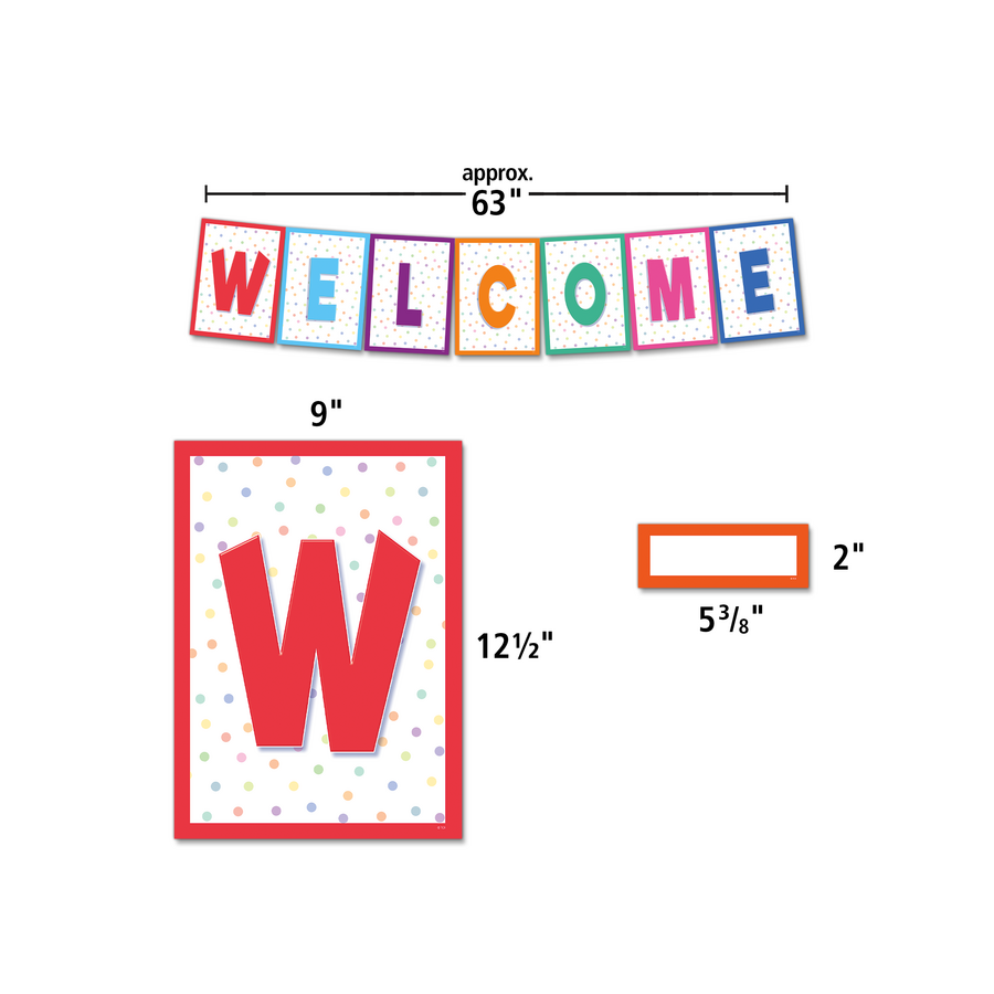 Use GIANT letters to create a welcome sign that no one can miss! Each letter is 9" x 12-1/2". The whole word spans about 7' long, and longer if the letters are spread out! 47 total pieces.