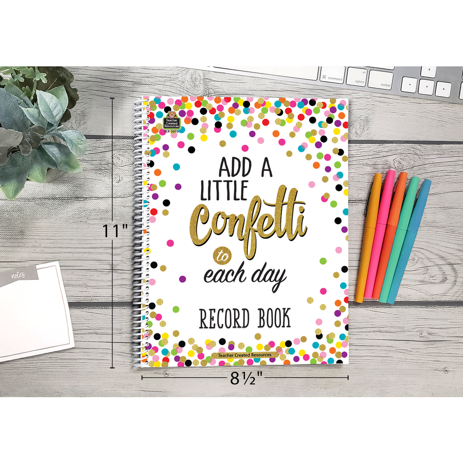 Add a little fun to your day with this confetti-themed record book. Plenty of space is provided to record grades for assignments, test, attendance, or other notations. Each two-page spread allows enough space for 10 weeks worth of record keeping. Convenient, perforated pages allow for easy management of larger classes. An easy-to-use grading chart is also provided.