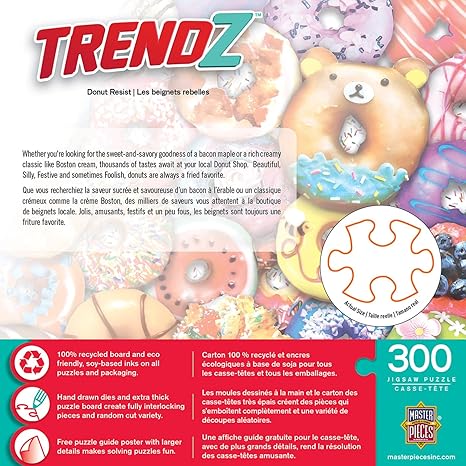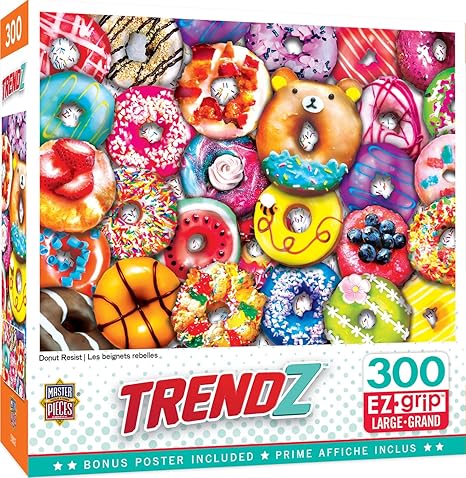 - Matte Finish – Our matte finish helps reduce glare for an improved puzzling experience. Here is what's featured in this Trendz Ez Grip Collection - Yummy bright colorful donuts.