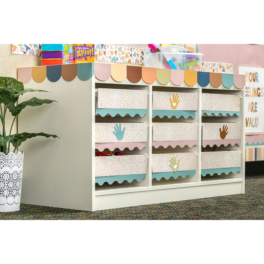 Use this colorful border trim to liven up your classroom! Create fresh looks for bulletin boards, windows, walls, and class projects. Mix and match with coordinating products (stickers, notepads, awards, etc.) for a classroom theme. Each pack has 12 pieces (3'' x 35'') for a total length of 35 feet of trim!