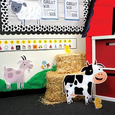 The cute and happy animals in this Jumbo Farm Friends Bulletin Board will add charm to bulletin boards, doors, and any classroom space. These colorful farm animals (cow, donkey, horse, chickens, pig, sheep, baby chicks) are perfect for use in a variety of classroom displays and themes: science, farm, and animals. Perfect for early childhood classrooms.