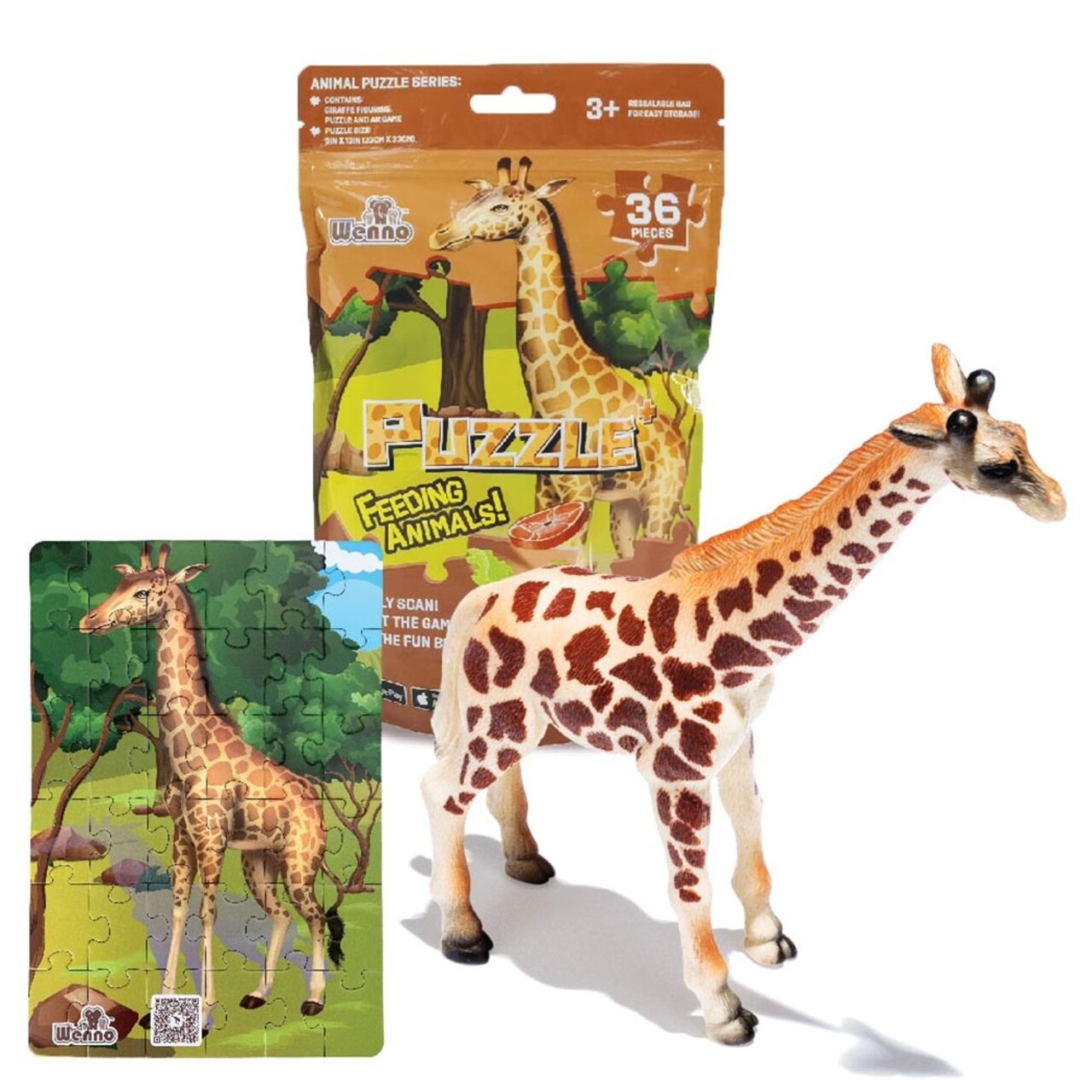 Learn animal names, habitats and what they eat. Completed puzzle is approximately 9x13 inches. This package contains one 36 piece puzzle and a lifelike/realistic giraffe figurine. Includes a downloadable app for a stem game. Recommended ages three years and up. Imported.