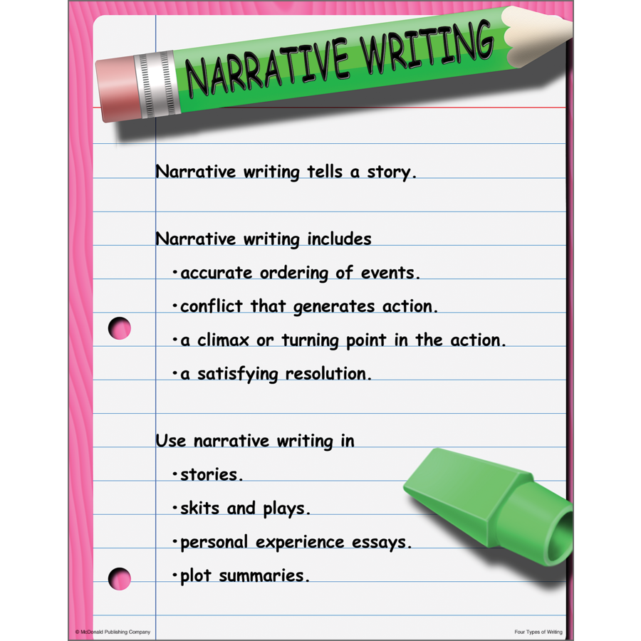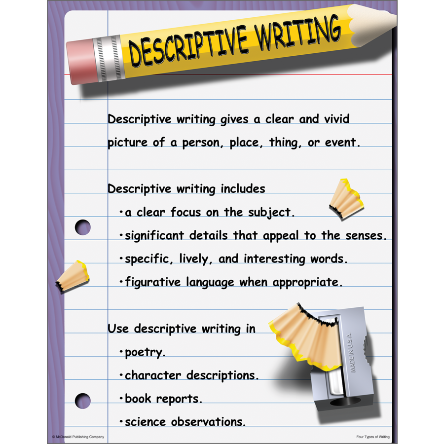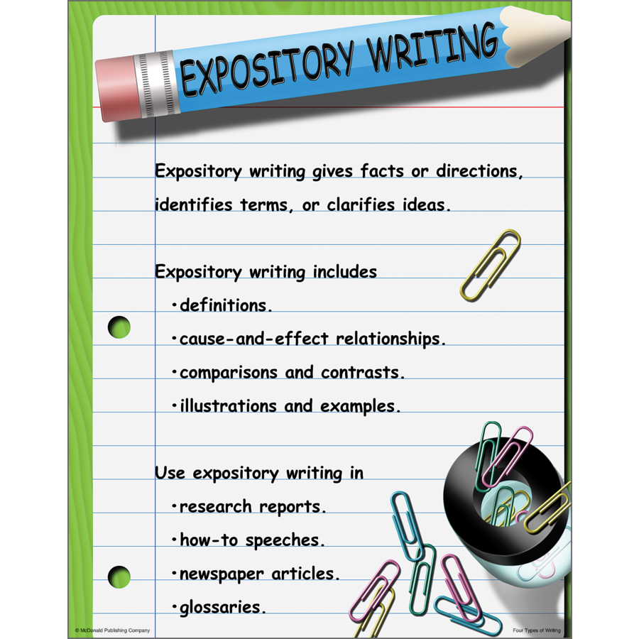 These bright, colorful posters define expository, narrative, persuasive, and descriptive writing. They also identify common elements and everyday examples of each type of writing. Includes 4 posters. Each poster measures 17" x 22".