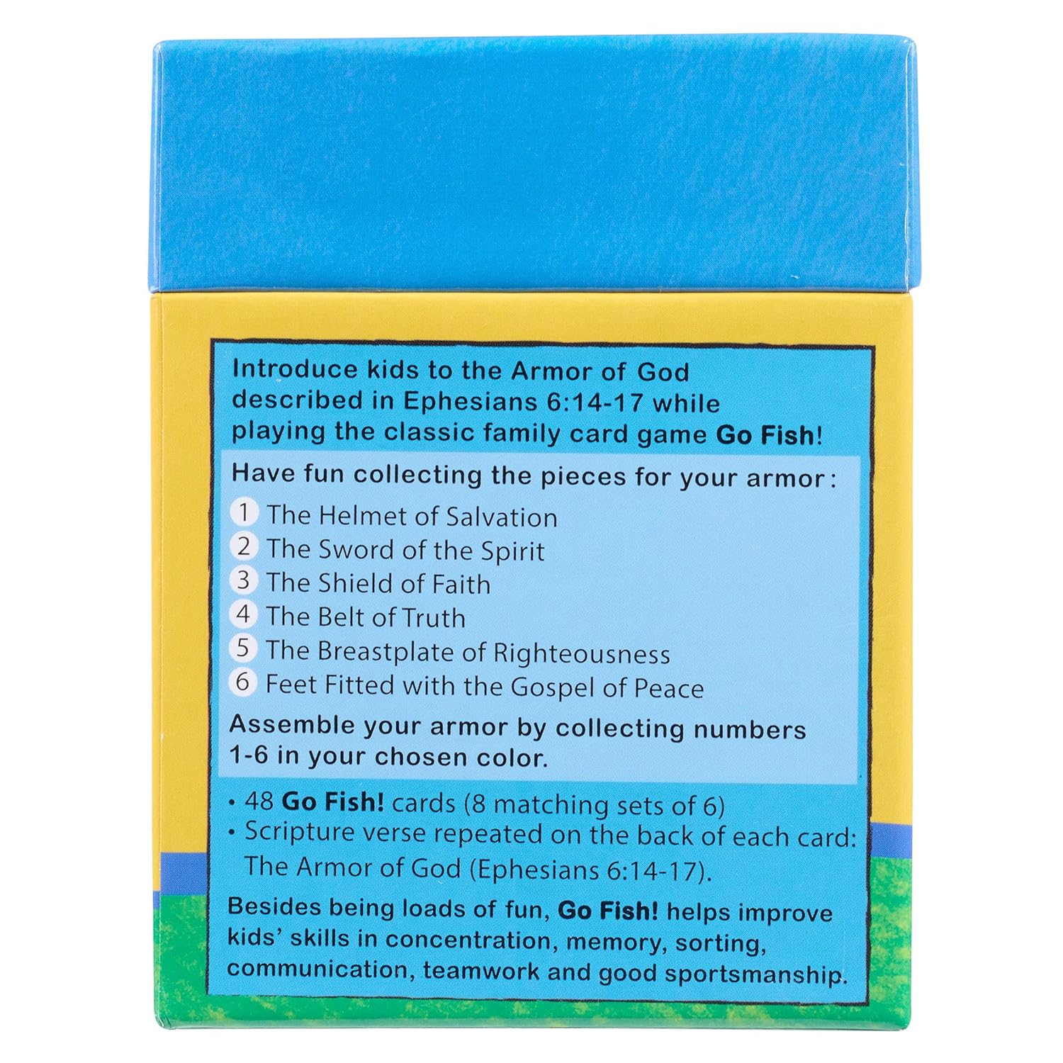 Consider treating our grandchildren with the Go Fish! The Armor of God Card Game for family game night or pick up a few sets for a fun game to play in Sunday school. The Go Fish! The Armor of God Card Game will effortlessly teach a valuable Bible-based lesson through a fun game.