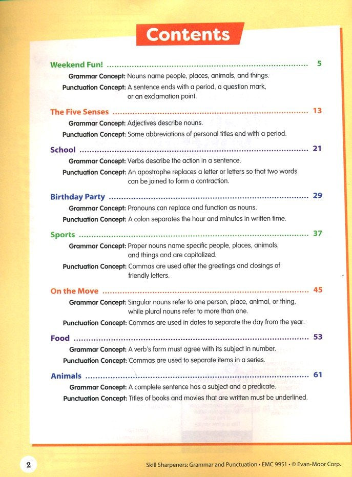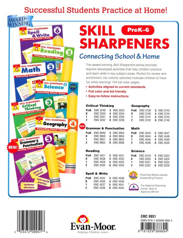 Help your elementary-level students learn to master grammar and punctuation with Evan-Moor's Skill Sharpeners: Grammar & Punctuation workbook. This Grade 1 workbook covers nouns, verbs, pronouns, commas, prepositions, adjectives, and more! Fifteen thematic units teach concepts through visually engaging reading selections, activities, and word games. Units include: