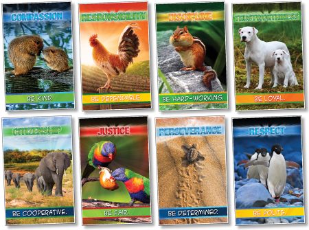 Show kids that character counts! Build a deeper understanding of positive character traits with simple instructive phrases and vivid photographs of animals behaviors. Eight colorful 11″ x 17″ (27.9 x 43.2 cm) posters per package. 8 pieces.