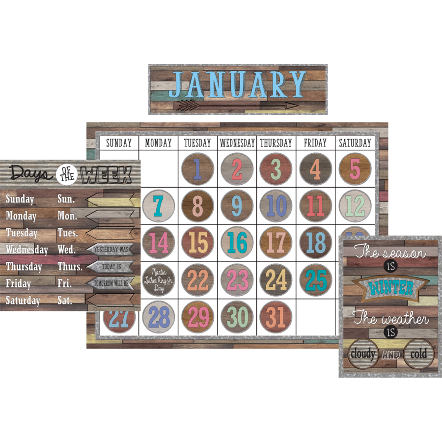 This stylish Home Sweet Classroom calendar display comes with easy-to-read number pieces, colorful monthly headers, and additional pieces for holidays and special occasions as well as yesterday, today, and tomorrow. Blank calendar measures 24 x 18. 84 pieces total.