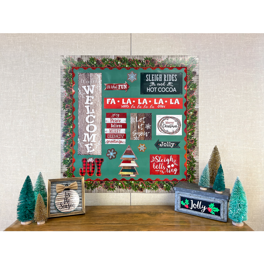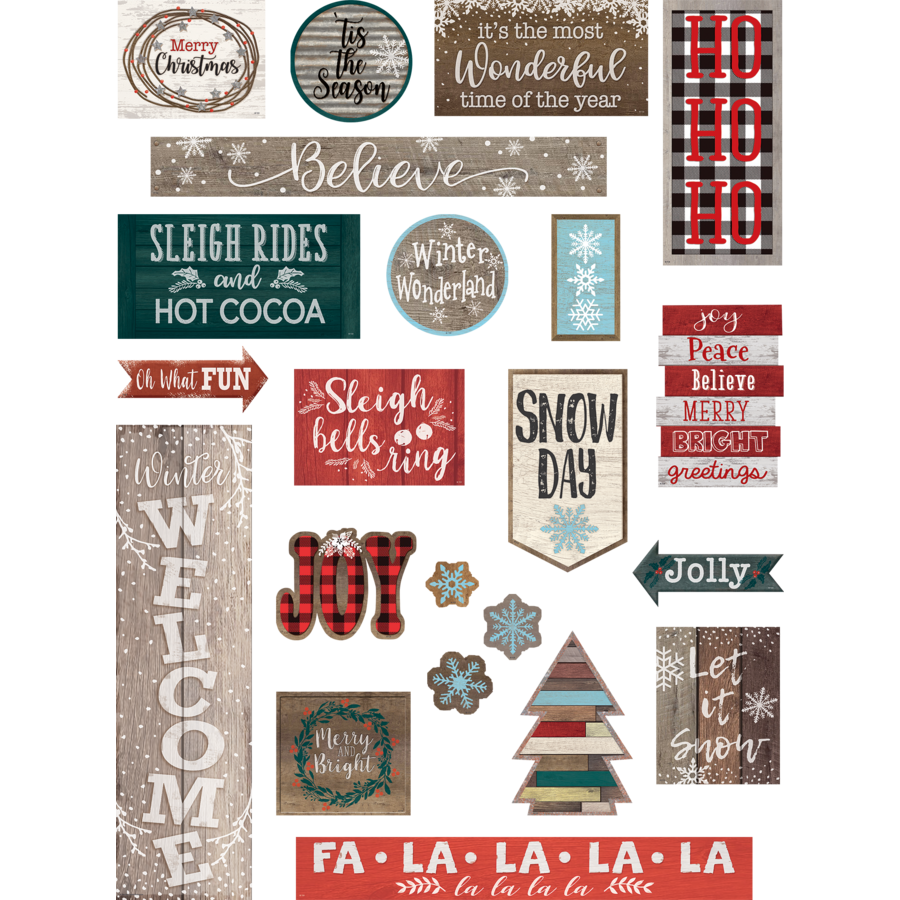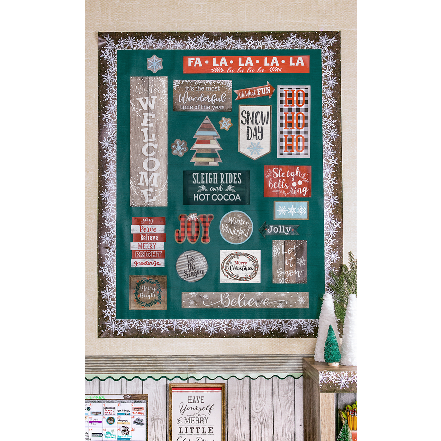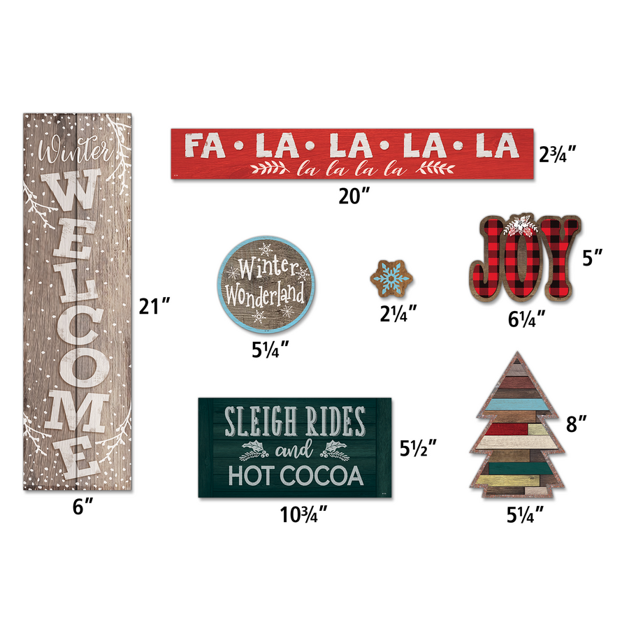 Celebrate the season with this winter-themed mini bulletin board set. The farmhouse-inspired signs feature seasonal sayings that add a perfect touch of winter fun to your classroom. Largest piece measures 21" x 6". 22 total pieces.