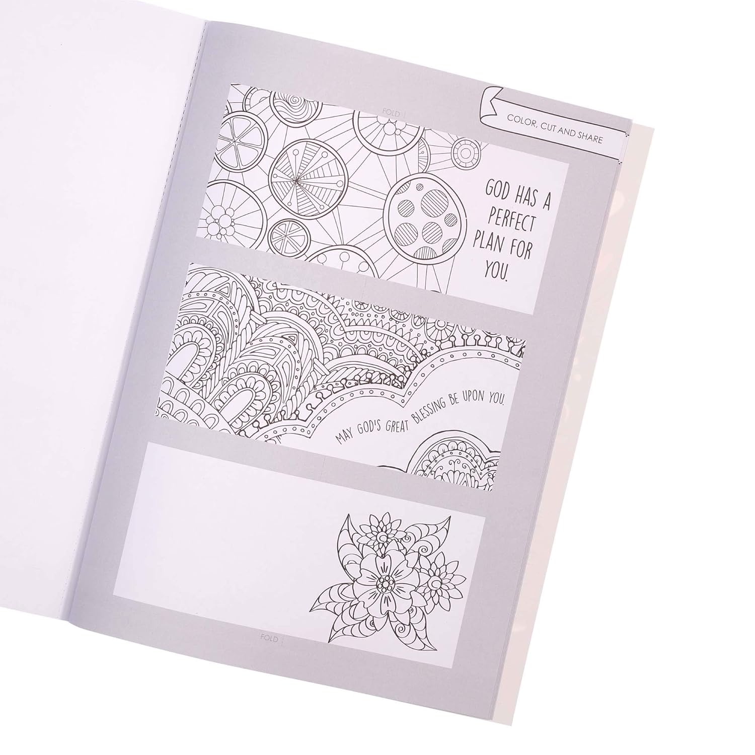 In all, there are 55 full-size coloring pages and 7 color, cut, and share pages with designs that can be used as bookmarks or DIY cards that you can share with finds. Perforated pages make it easy to tear your masterpieces from the coloring book to frame, put them up on the fridge, or even use them as wrapping paper to wrap a small gift.