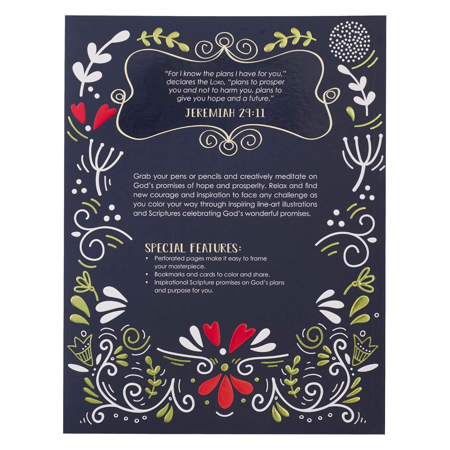Share the encouragement that only comes from knowing God with friends and family going through challenging times in their lives when you gift the I Know the Plans I Have for You Coloring Book for Adults. A presentation page is included for this purpose. You can start the coloring process by coloring it yourself when you complete it or leave it up to the recipient. But, the I Know the Plans I Have for You Coloring Book for Adults can also be used to worship God for the great God he is when times are good, so keep a copy for yourself to use as part of your personal devotional time with the Lord.