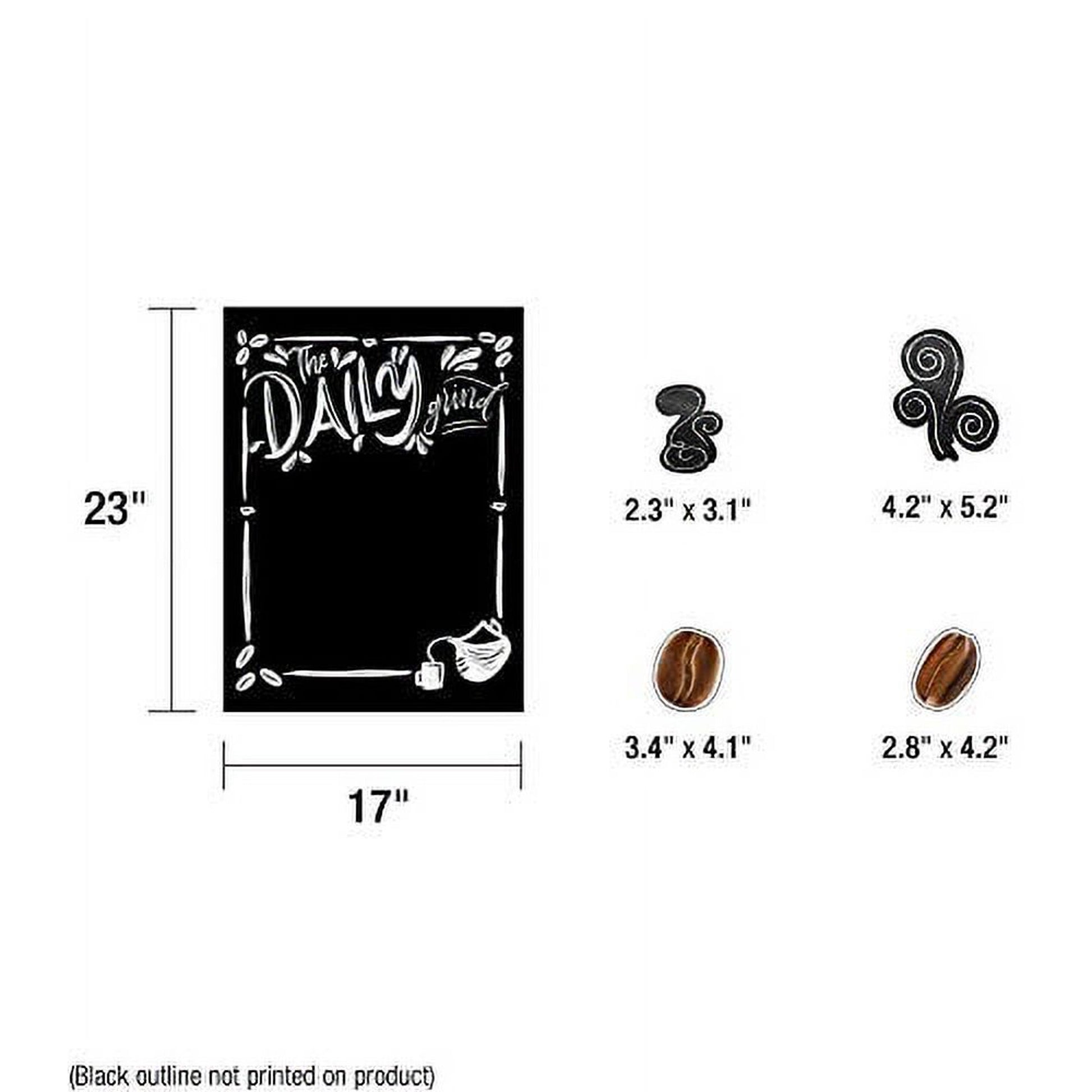 The Industrial Chic Calendar set includes these pieces: 1 calendar (23" x 17"), 12 monthly headers (17" x 3.84"), 31 cover-ups (2.2" x 2.2"), 17 special occasion cover-ups (2.2" x 2.2"), 1 days-of-the-week chart with 3 overlays (12.1" x 16.48"), 1 season chart and 4 season overlays (9.98" x 12.8" and 8.89" x 2.88"), 10 weather overlays (3.65" x 1.32"), 6 hearts (largest 3.68" x 3.06" smallest 3" x 2.5"), and 9 stars (largest 3.5" x 3.52" smallest 2.13" x 2.14")