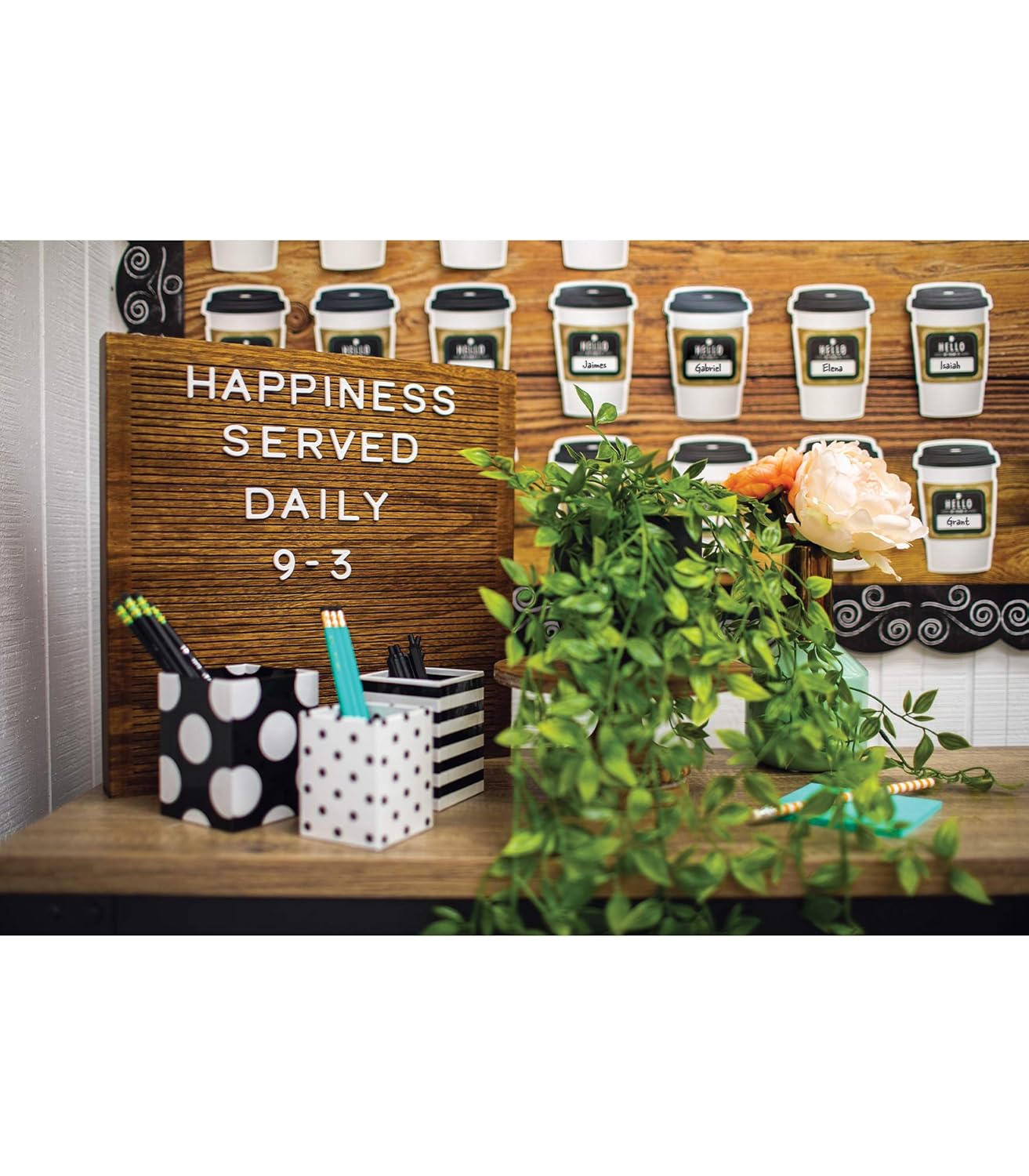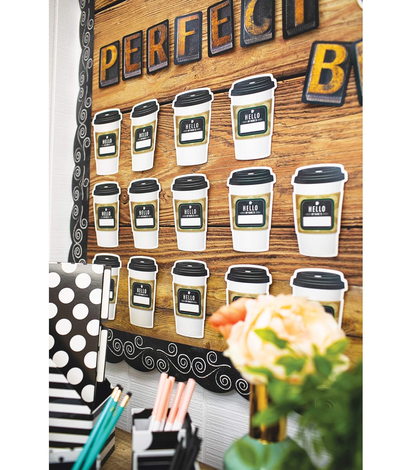 DECORATIVES: Create an inspirational learning space with an creative bulletin board for the classroom. This coffeehouse-themed bulletin board adds visual interest to any area of your classroom.