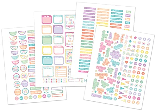 This gleeful lesson planner makes organization easy and beautiful. Keep up to 40 weeks of daily lesson plans in one convenient book! This book includes substitute teacher information, student roster sheets, and memorable quotations to use and discuss throughout the year. Twelve large monthly planning calendar spreads are also included for year-long lesson planning as well as for scheduling appointments, conferences, and events. The lesson planner also includes a variety of colorful stickers to use throughout the year. Whether you need to prioritize the day's events, add weekly reminders, highlight something special, or simply provide a bit of inspiration, these cheerful stickers will keep your lessons beautifully organized. Features Keep up to 40 weeks of daily lesson plans. Includes substitute teacher; Contains 340 colorful stickers to use during the school year; Spiral-bound; Specifications Weight: 0.875 lbs.