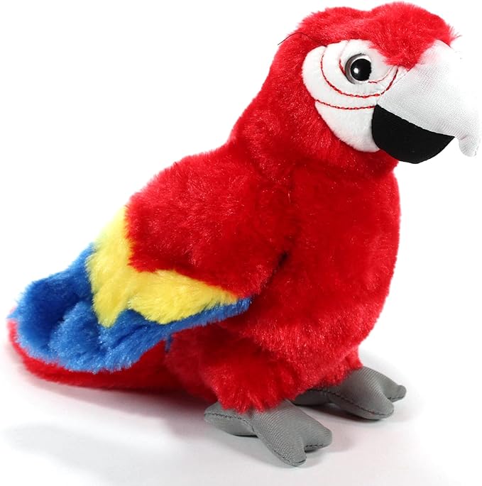 - Admire the brightly colored plumage of this scarlet macaw plush toy that has a red underbelly and a playful stance.