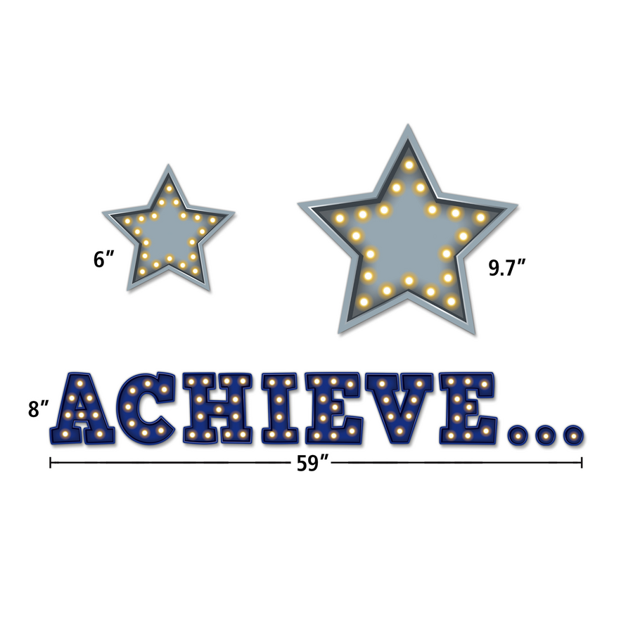 This bulletin board display will make a big impact in your classroom. The motivational words will inspire students to do their best every day. Each letter is approximately 8" x 8". The entire stacked bulletin board is approximately 5' x 5', or larger if the letters are spread out! Includes a teacher's guide. 53 total pieces.