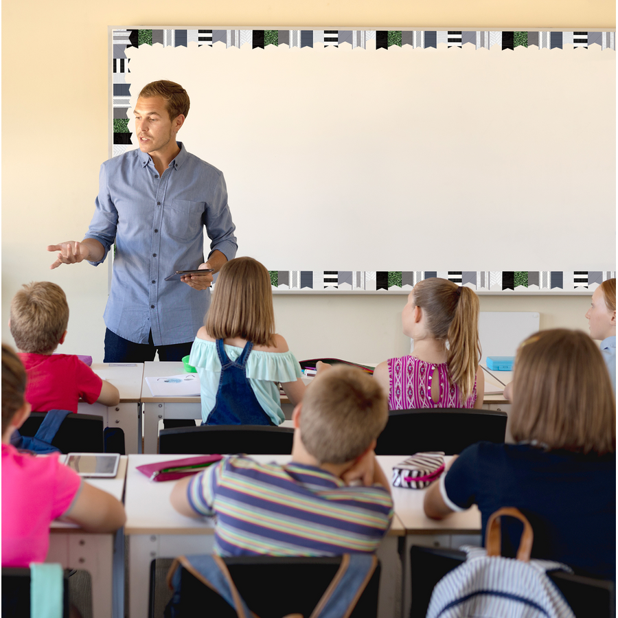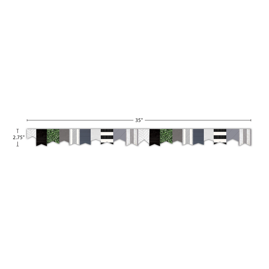 Use this pennants border trim to liven up your classroom! Create fresh looks for bulletin boards, windows, walls, and class projects. Mix and match with coordinating products (stickers, notepads, awards, etc.) for a classroom theme. Each pack has 12 pieces (approx. 2¾'' x 35'') for a total length of about 35 feet of trim!