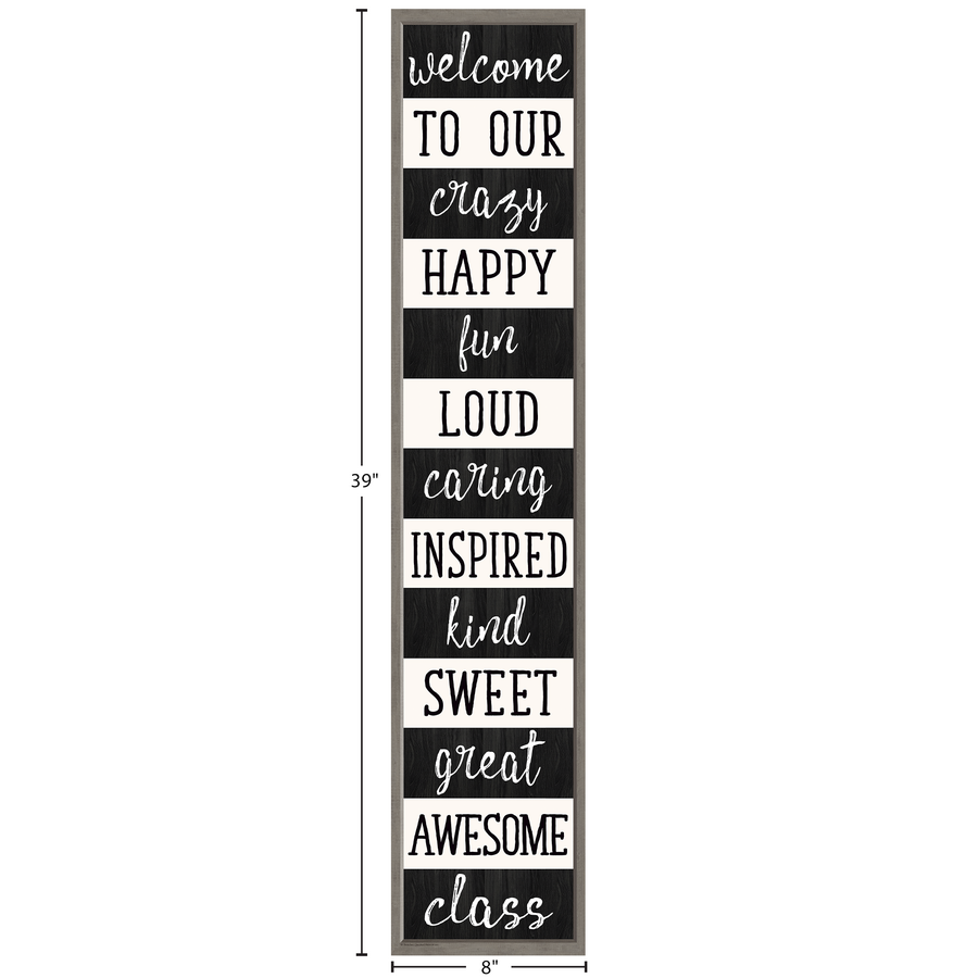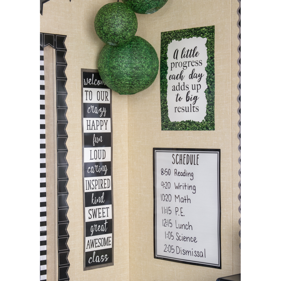 Welcome, inspire, and encourage students with this chic black and white banner! Folds for easy storage and then unfolds to 8" x 39".