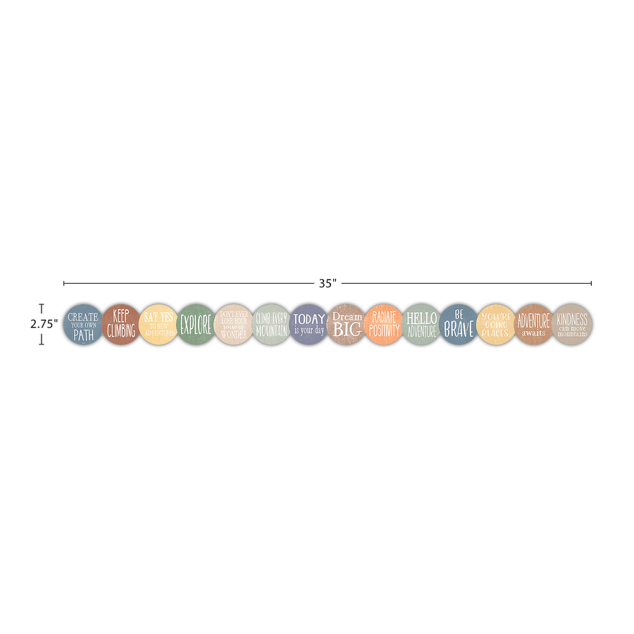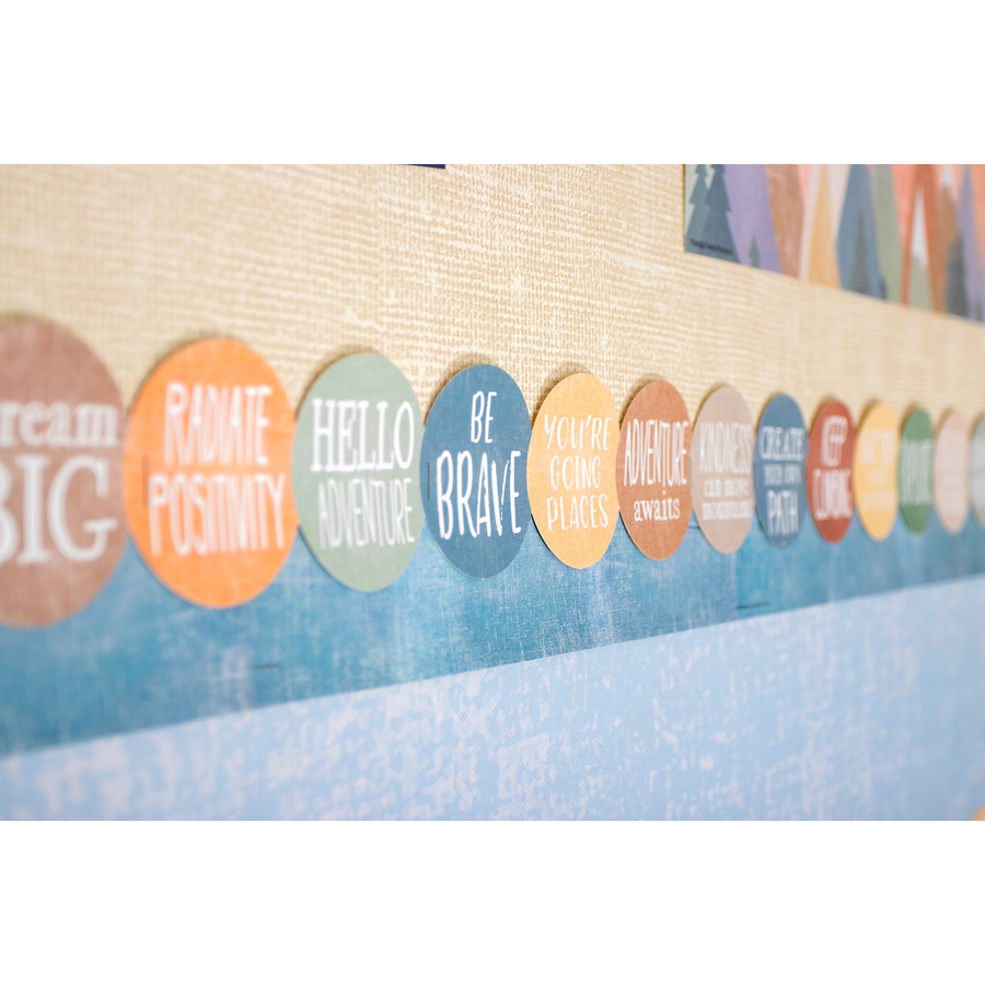 Use colorful border trim to liven up your classroom! Create fresh looks for bulletin boards, windows, walls, and class projects. Mix and match with coordinating products (stickers, notepads, awards, etc.) for a classroom theme. About 35 feet of trim per pack.