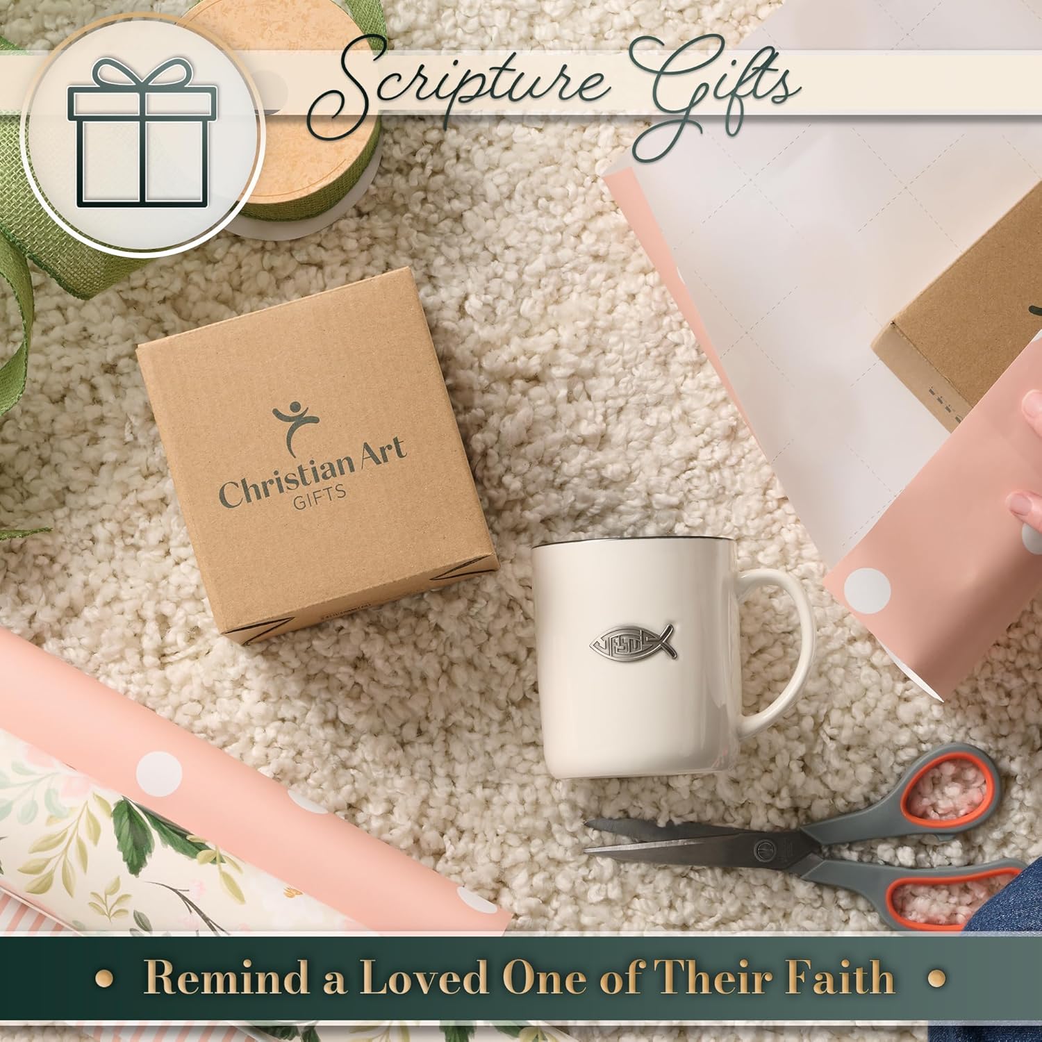 - Clean, Pure, Quality, Cadmium-free Drinkware: Made of durable ceramic, this large capacity, wide-mouthed beverage cup ensures a refreshing drinking experience as you enjoy your favorite hot or cold drink and reflect on its Bible verse message of Christ's peace, love, comfort, and encouragement. The novelty beverage mug features a lead & cadmium-free glaze, offering a glossy finish and non-toxic sipping experience.