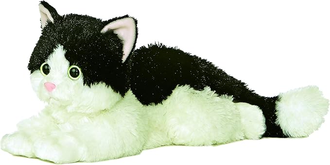 - This fluffy and loveable black and white cat plush makes for a great cuddling partner