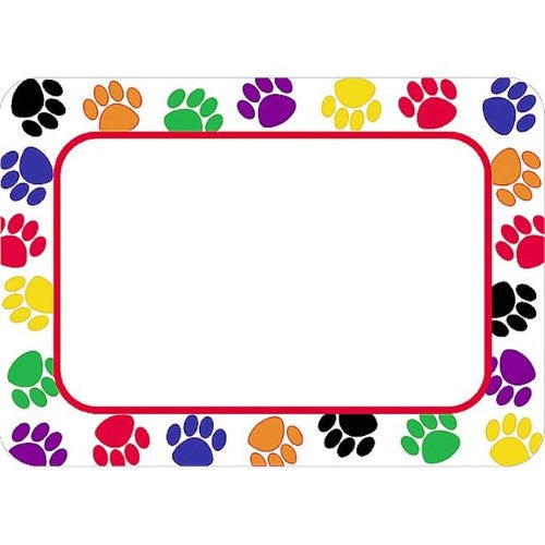 These all-new name tags/labels are bigger than ever. The larger writing space comes in handy when using them for name tags gift tags or labels for student portfolios or cubbies. 3.5 x 2.5. Teacher Created Resources Colorful paw prints nametag features huge space for writing and is of size 3 1/2 x 2 1/2. Nametag is handy when using them for nametags gift tags labels for student portfolios or cubbies sold as 36 per pack. • Name Tags - great for labels cubbies gift tags parent-teacher visits and much more. • Space provided for student name. • Size: 2.5 tall x 3.5 wide. • 36 per pack. • Age group and grade: Ages 1 - 12 years and grades infant - 6th. • All-new name tags/labels are bigger than ever. • Larger writing space comes in handy when using them for name tags gift tags or labels for student portfolios or cubbies.