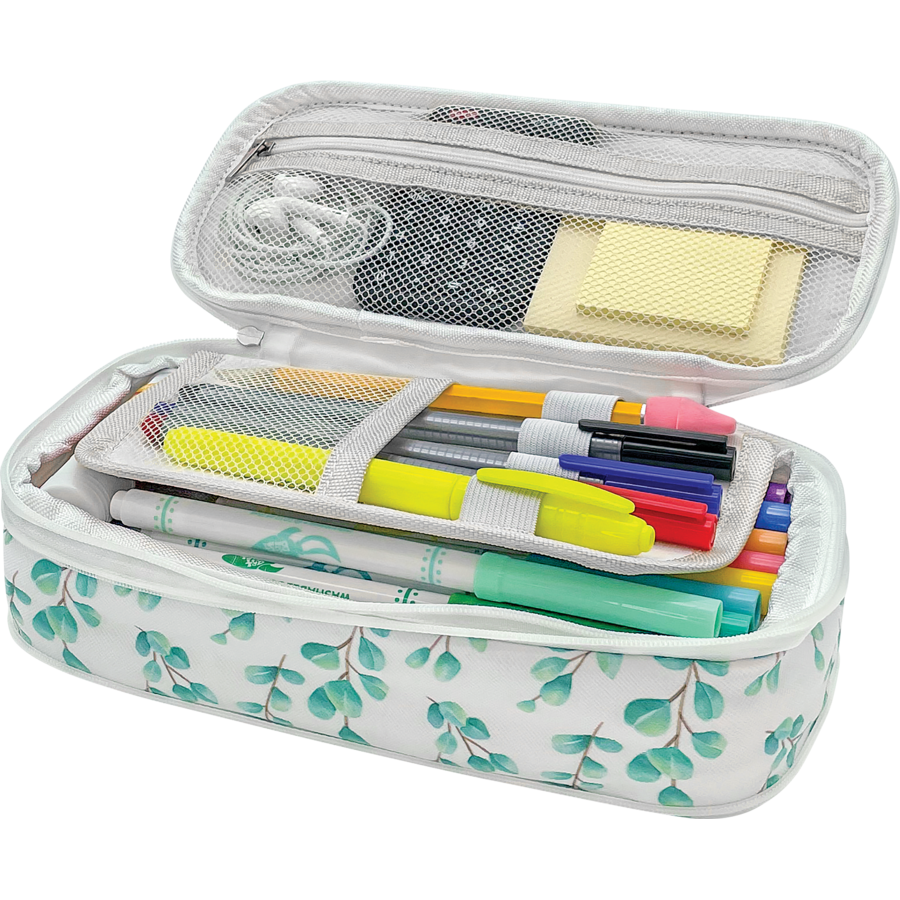 Choose this stylish Eucalyptus Pencil Case if you are looking for a sturdy, durable, and expandable pencil case! This case can store up to approximately 50 pens or pencils.