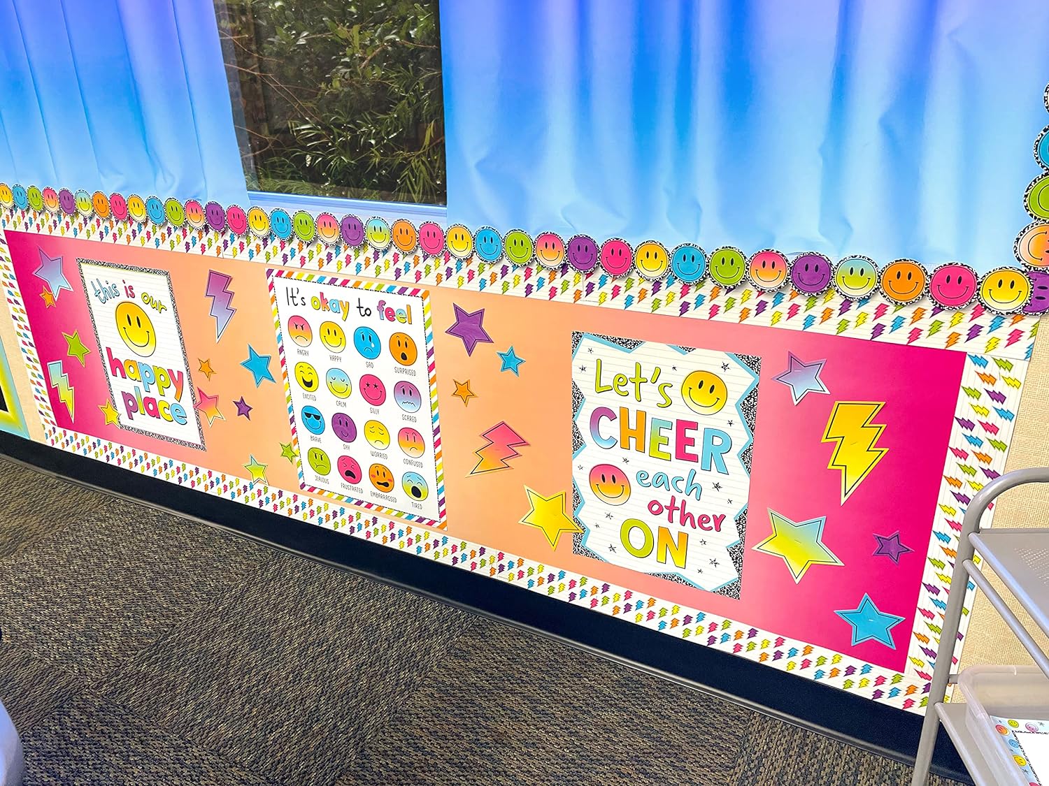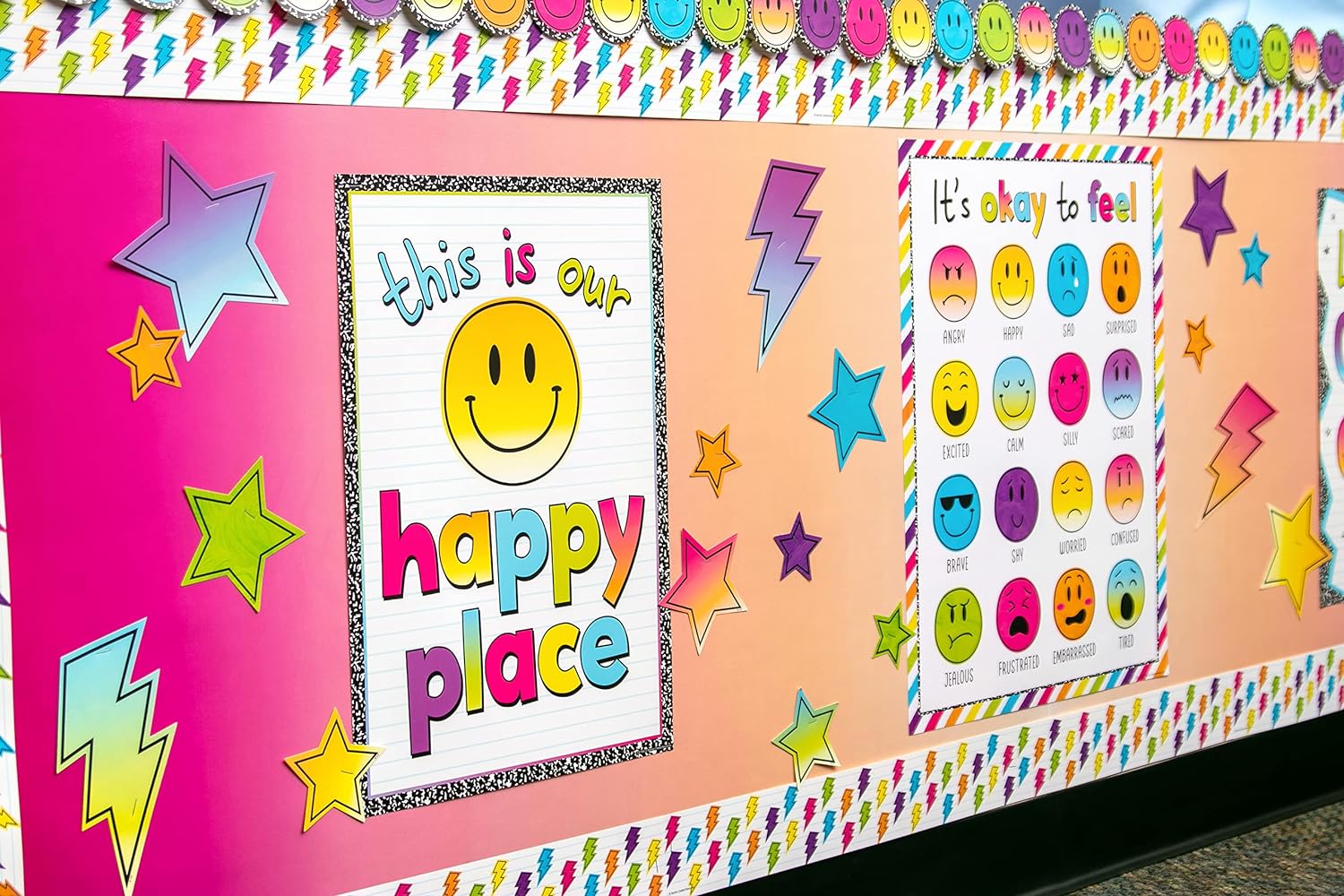 This pink and orange color wash is the perfect color palette for a bold classroom design! This revolutionary non-woven fabric makes creating beautiful bulletin board backdrops quick and easy! The lightweight material is simple to hang—no more struggling with paper that wrinkles and tears. Attach border trim, accents, posters, and student work with staples or tape and remove without ripping or leaving conspicuous holes. The durable write-on/wipe-off surface can be used again and again. Roll measures 4' x 12'.