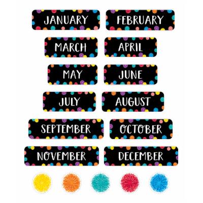 Give your monthly calendar display a bold. bright look with these Pom Months of the Year. These month headlines are great for use with a calendar chart during a daily calendar lesson or circle time. Included in the set are 12 month headlines and 5 bonus pom-poms cut-out accents. SpecificationsWeight: 0.56 lbs.