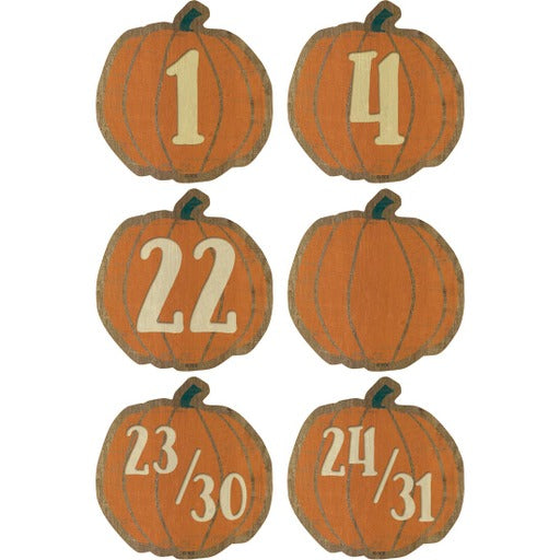 These pumpkin calendar days come with 31 calendar days plus a 23/30 card a 24/31 card and 3 blank cards. Use them to turn our calendar charts into reusable calendars month after month! Each card measures approximately 2-3/4 x 2-1/2. Each pack includes 36 cards.