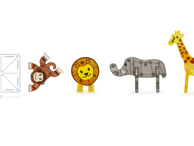 Anything can happen in the wild! Start your expedition with the Safari Animals 25-Piece set for a roaring good time. Monkey around with magnetic, savannah-themed tiles as you explore the vibrant-colored habitat with your four safari sidekicks. Jump into imaginative play and screen-free fun while going on an absolu-tile-y wild adventure through canopies, treetops, and hidden alcoves.