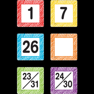 Use colorful decorative cards to enhance blank classroom calendars. About 2.5 inches. Each pack includes 36 total cards: 1-31 cards a 23/30 card a 24/31 card and 3 blank cards.