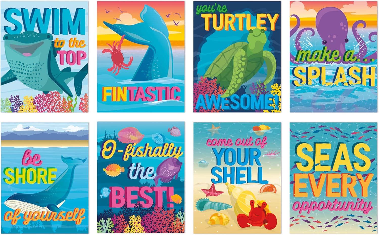 - Cool ocean vibes, motivational phrases, marine life imagery, and vibrant colors make our Seas the Day posters easy to age up or down, perfect for any classroom.