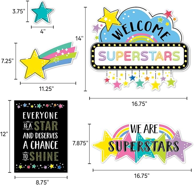- CREATE A COHESIVE LOOK – Extending the star theme of this bulletin board set is easy with the many other stellar products in our Star Bright Collection.
