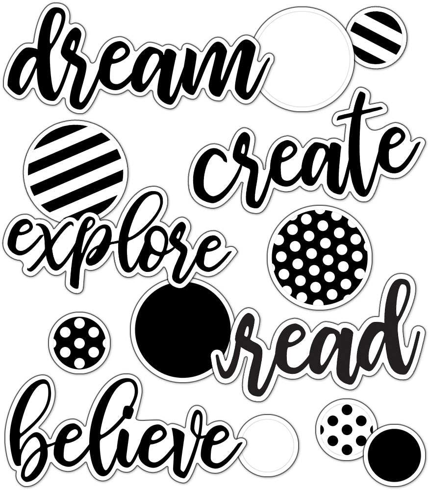 Motivate students year-round and add visual interest to walls with an inspirational bulletin board. The 21-piece Script Words: Teach Mini Bulletin Board includes these inspiring pieces and messages: