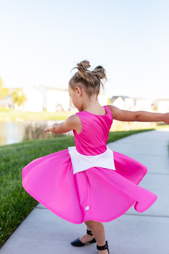 Your little one will be ready to face evil queens, accompany knights, and battle monsters, there will be no resting in this Sleeping Beauty twirl dress!