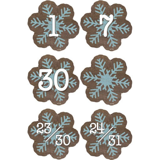 These snowflake calendar days come with 31 calendar days plus a 23/30 card a 24/31 card and 3 blank cards. Use them to turn our calendar charts into reusable calendars month after month! Each card measures approximately 2-3/4 x 2-1/2. Each pack includes 36 cards.