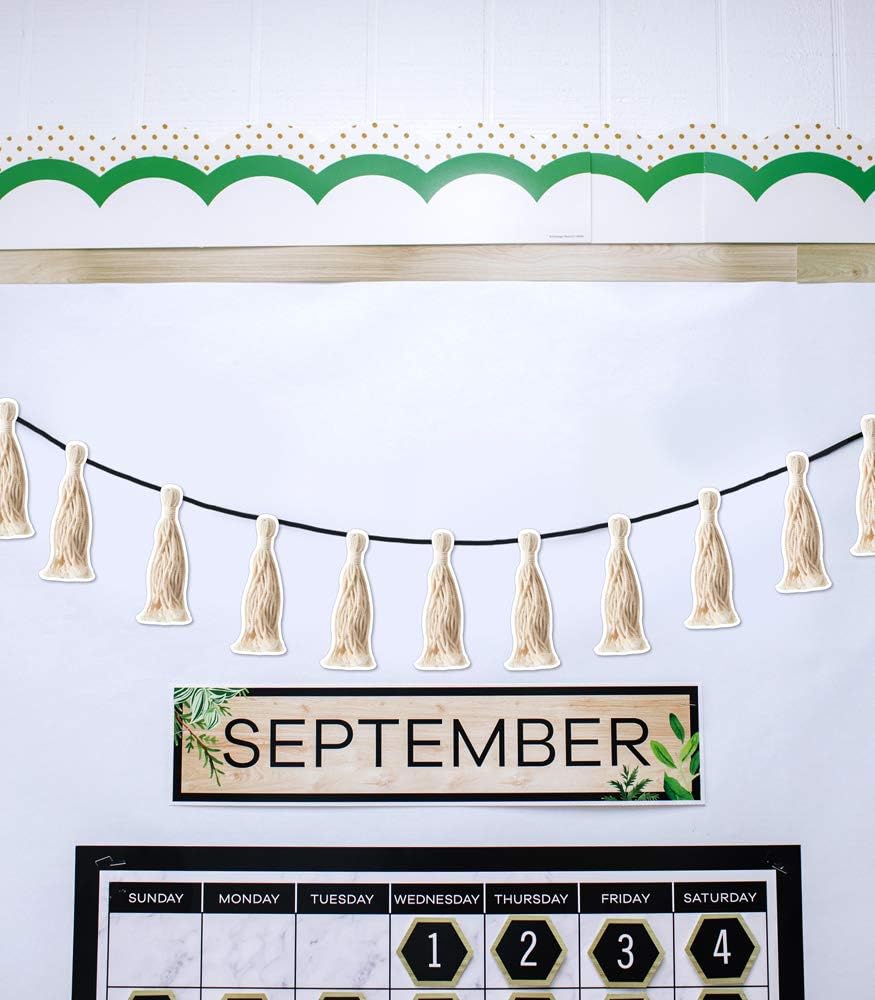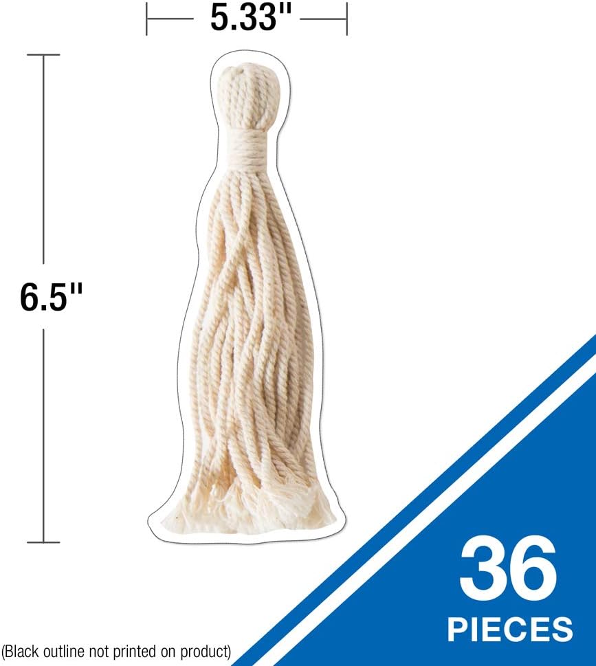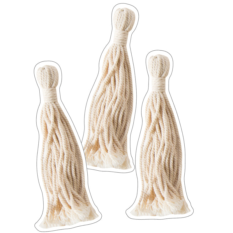 Decorate any area room in style with the 36-piece Schoolgirl Style Simply Boho Tassel Cutouts! Featuring 36 tassels made of natural-colored threads these bulletin board cutouts will add a beautiful touch to any corner of the classroom. These farmhouse classroom decorations will add a tranquil touch to office decor classroom decor or homeschool decorations year-round. Each of the bulletin board cutouts measures 5.65 x 5.44. Printed on durable card stock these versatile ready-to-use cutouts for bulletin board decorations are die-cut and reusable if laminated. Use for craft projects locker decorations wall decor and more.