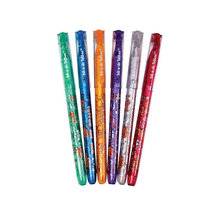 - Create your own tattoo using these glitter gel pens safe for use on skin.