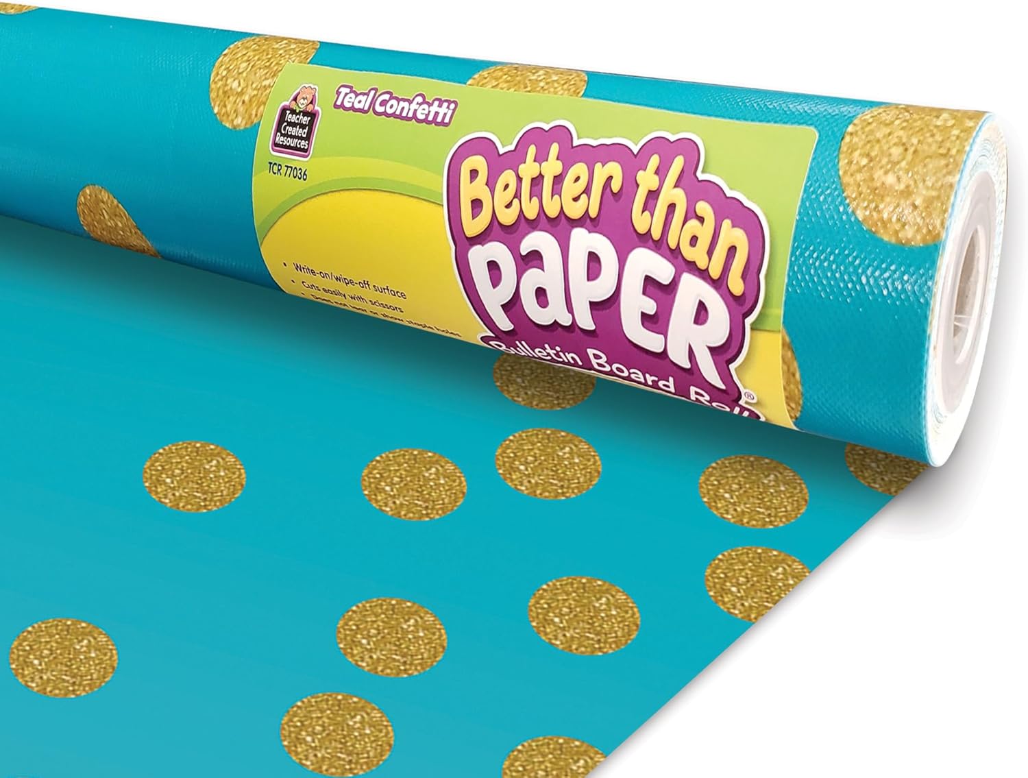 This vibrant design will liven up your classroom and the revolutionary non-woven fabric makes creating beautiful bulletin board backdrops quick and easy! The lightweight material is simple to hang—no more struggling with paper that wrinkles and tears. Attach border trim, accents, posters, and student work with staples or tape and remove without ripping or leaving conspicuous holes. The durable write-on/wipe-off surface can be used again and again. Roll measures 4' x 12'.